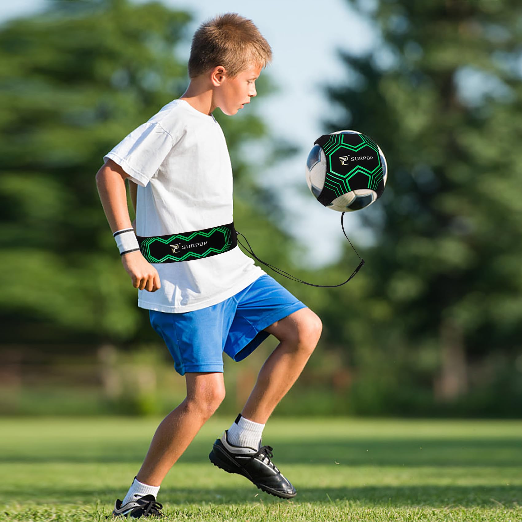 ⚽Adjustable waist belt - belt strap is adjustable to fit waist sizes (33"-39"). Great football training aid for kids and adults. With its fluorescence design, our soccer trainer can be used indoors and outdoors, day or night.