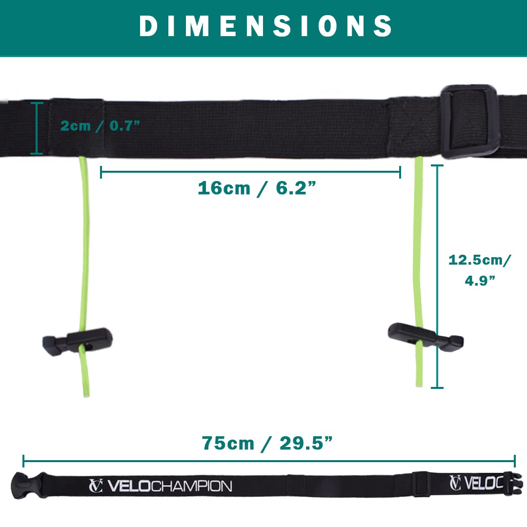 Description Perfect for running events - ideal for athletes participating in a variety of running and triathlon events. This running belt is perfect for 5k, 10k, obstacle, and triathlon events. It ensures the stability oyour race number while providing comfort. Quality and comfort without compromise: experience quality and comfort with the Velochampion race belt, a lightweight design crafted from high-grade elastane. This adjustable running waist belt provides a snug fit that withstands sweat and water. Ideal for triathlon and running events, it eliminates the need for safety pins, protecting your clothing from damage. Choose Velochampion for an uncompromised performance. Choose your size: 3 sizes available - Kids, Adult (S/M) and Asult (L/XL). Check out the size chart in the images. Effortless number attachment: simply remove the toggles, place your running race number through the bright elastic threads. Re-apply the toggles on to the elastic threads attaching them close to the running number to prevent movement. It’s a simple process that takes less than a minute! A cycling brand you can trust – here at Velochampion we have been developing bike pumps for over 12 years that have been tried and tested by professional cyclists, so you can have quality bike accessories for you and your bike! Our products are highly rated by amazon customers.