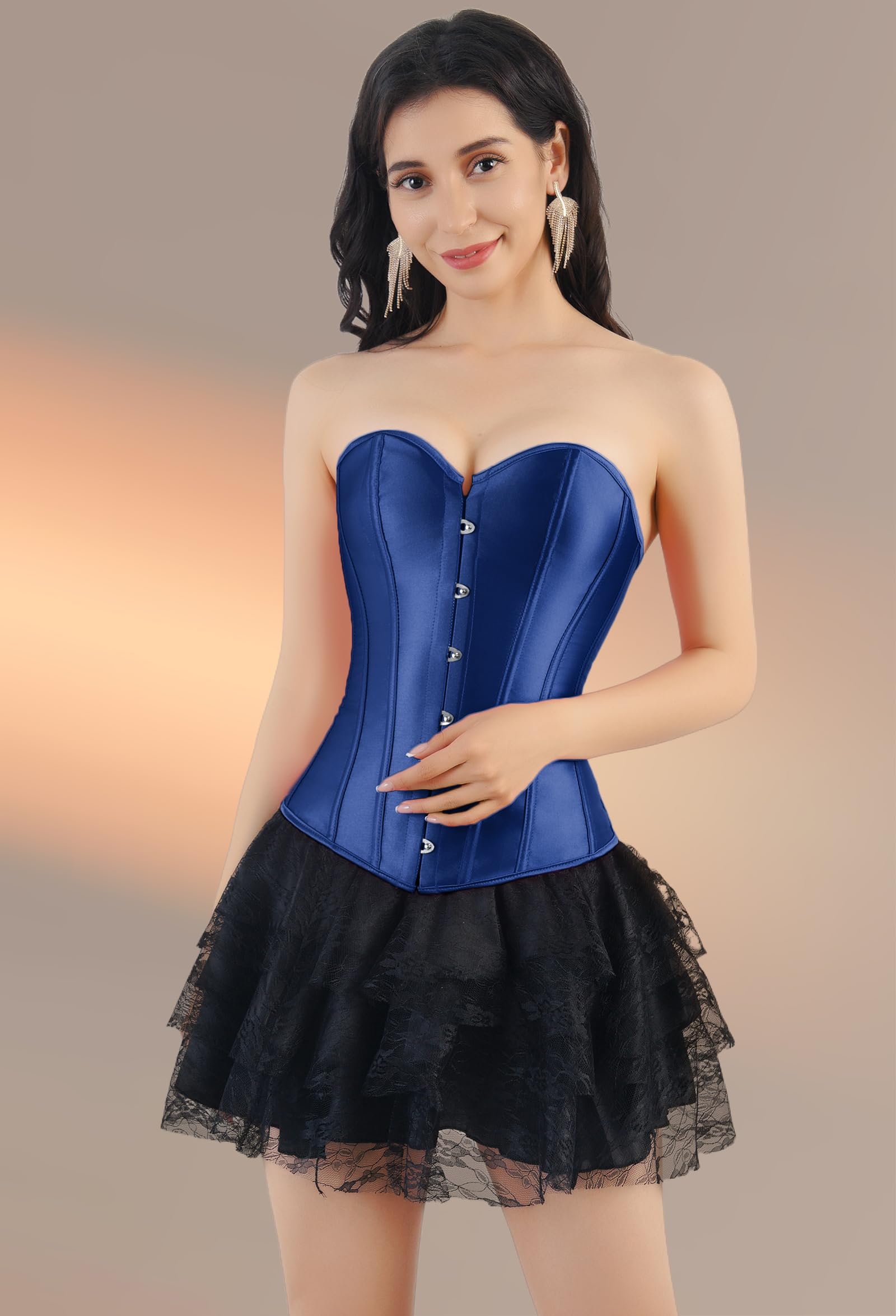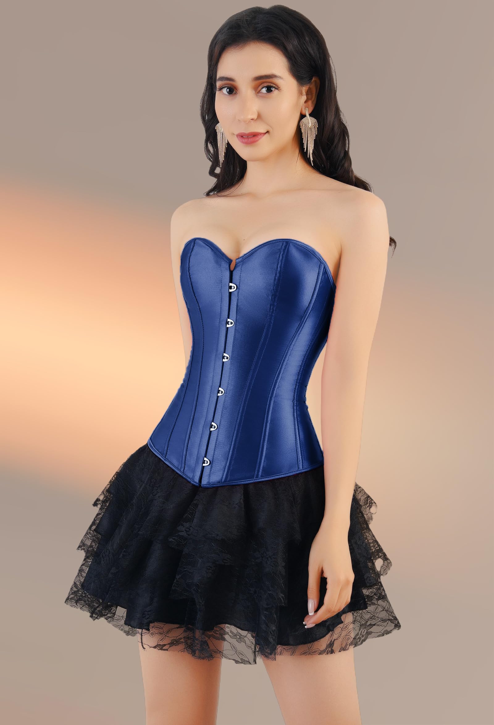 FEATURES:The lace up corset has a buckle front closure and adjustable laces on the back, so you can adjust it to fit your body perfectly,modesty panel to hide or protect your back,12 flexible bones to give shape and support. A waist corset will make you feel comfortable and confident in your body.