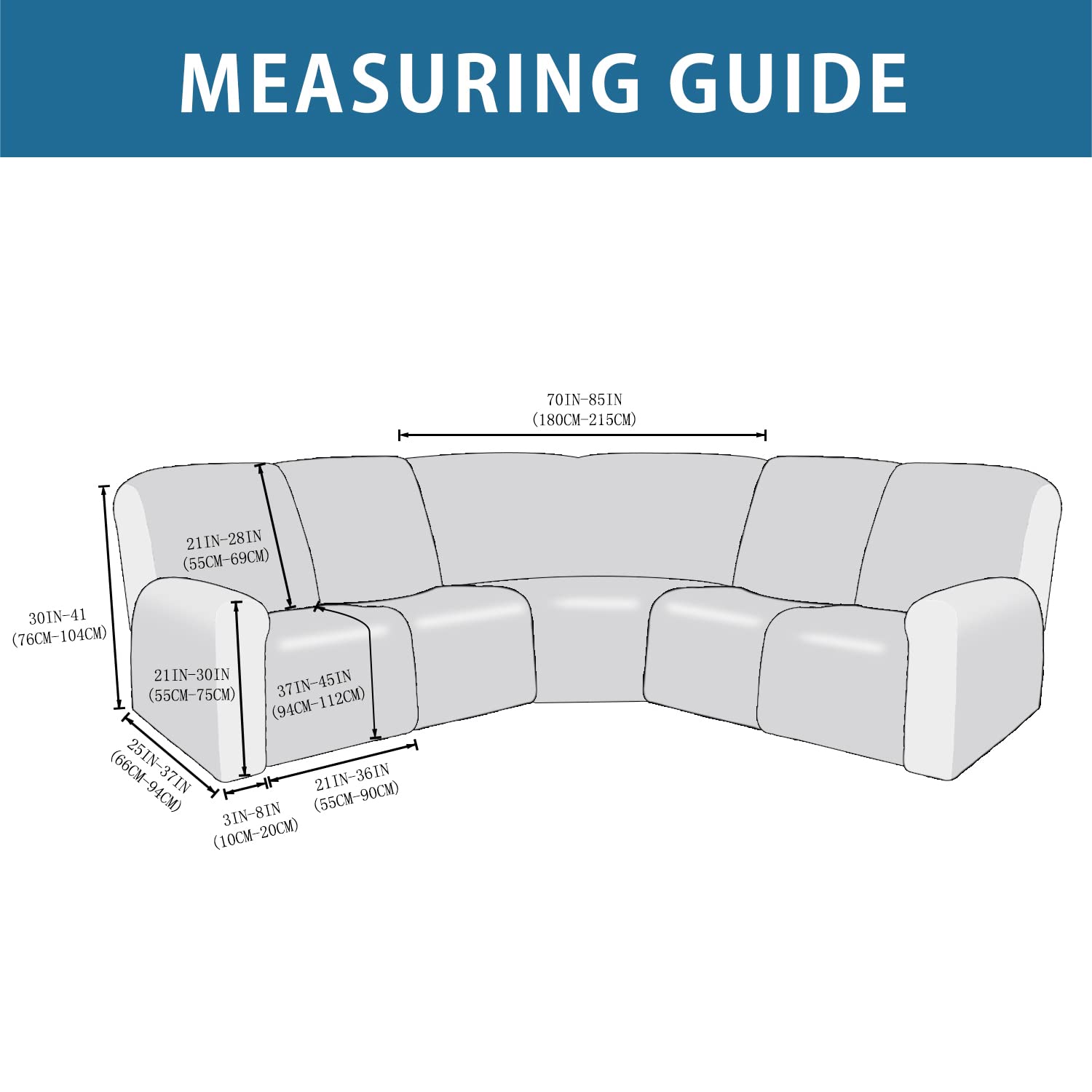 L SHAPE RECLINER SOFA FIT: Our 7 piece , L shape recliner Sofa cover is made to fit perfect most L shape recliner Sofas , made with 7 seperate pieces including 2 arm pieces, 4 seat and backrest of cover pieces, and 1 corner piece so opening the recliner would be possible even with the sofa cover, its made to fit perfect on most L shape recliner Sofas, and there is a option to add more seats and console covers if yours is bigger then 2 seats on each side and the corner 2 seats please refer to the measurement guide in photo, please measure before purchasing