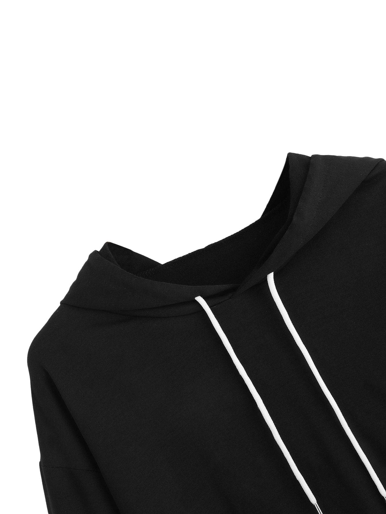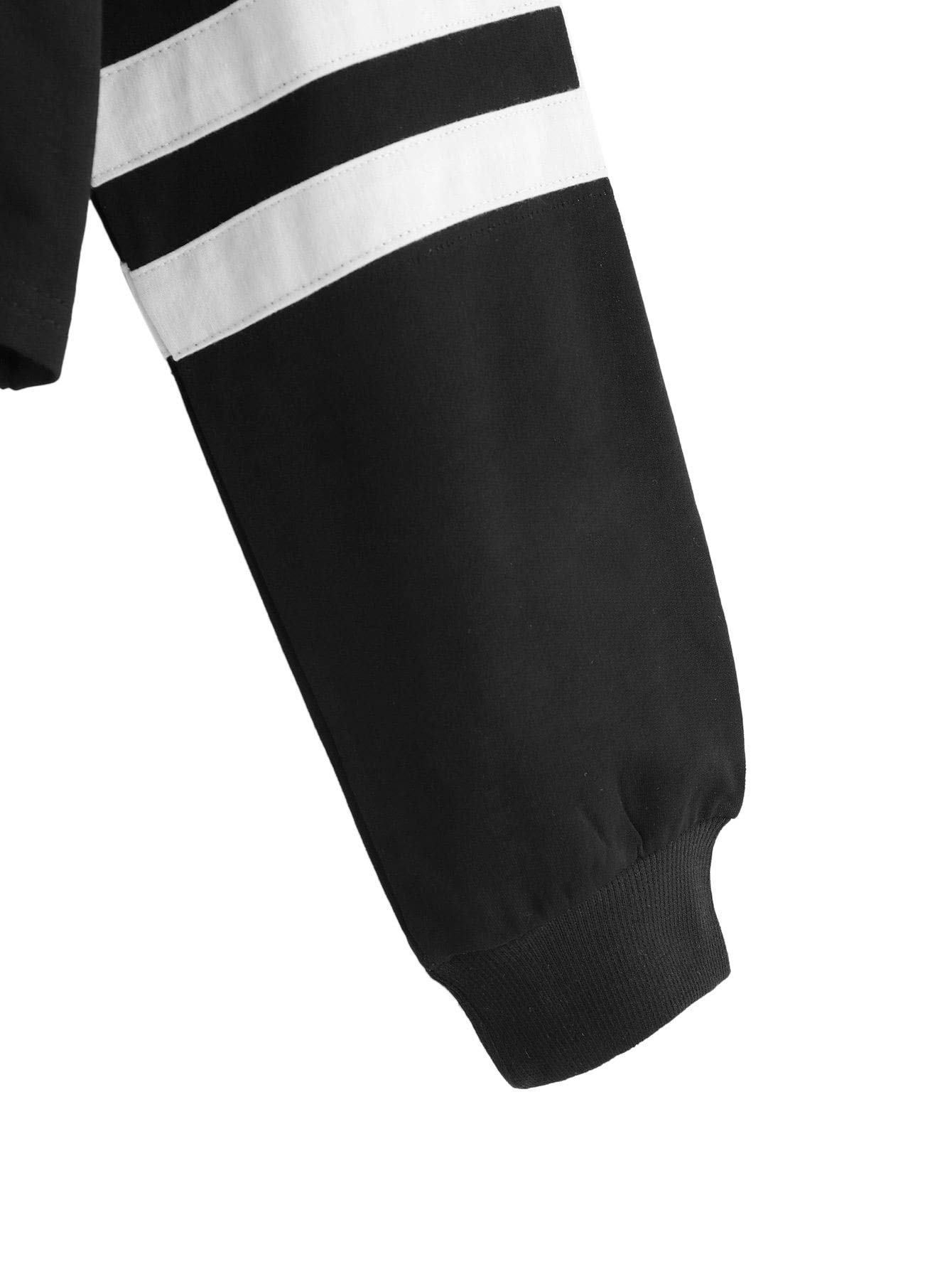 Stripe sleeve, hooded, long sleeve, crop top sweatshirt for women.
