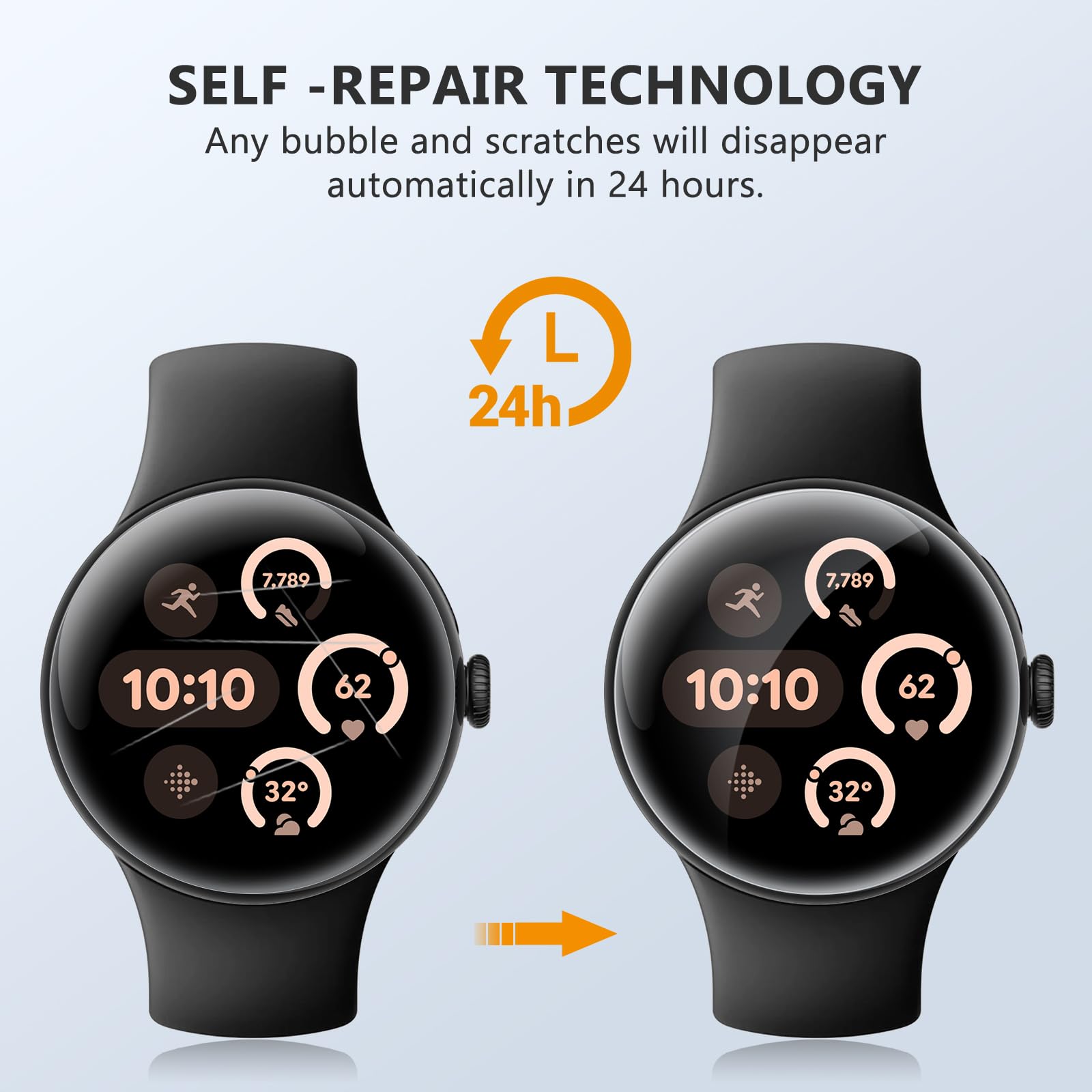 【Flexible Materials & Maximum Protection】Please Note: The screen protector is not tempered glass, it is made of TPU that can cover the curved edges of the Pixel Watch 45MM, providing maximum protection against scratches. With nano-elastic to prevent your Pixel Watch 4/3 screen breakage caused by drops