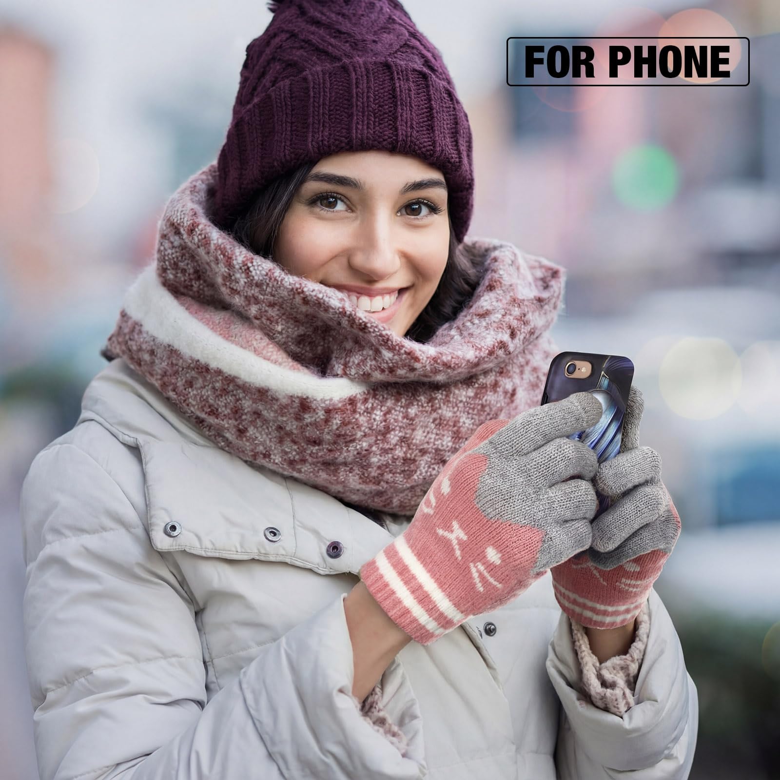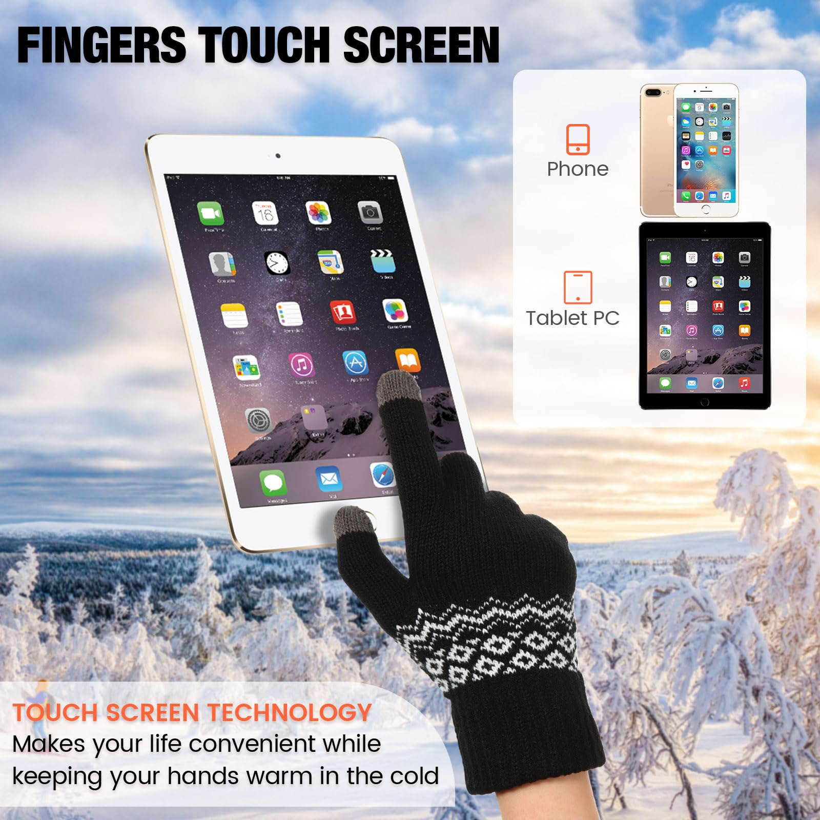 Practical Touchscreen Design: with conductive fabric on finger tips (thumb and index finger), these women fleece gloves are compatible with smartphone, tablet, smart watches, driver of cars with touchscreen panels, allowing you to play with your touchscreen devices, without worrying about freezing hands