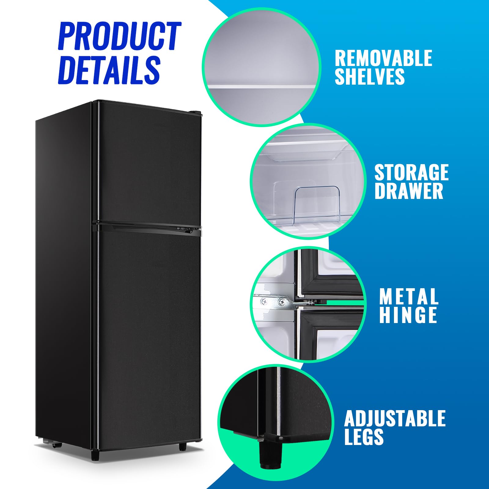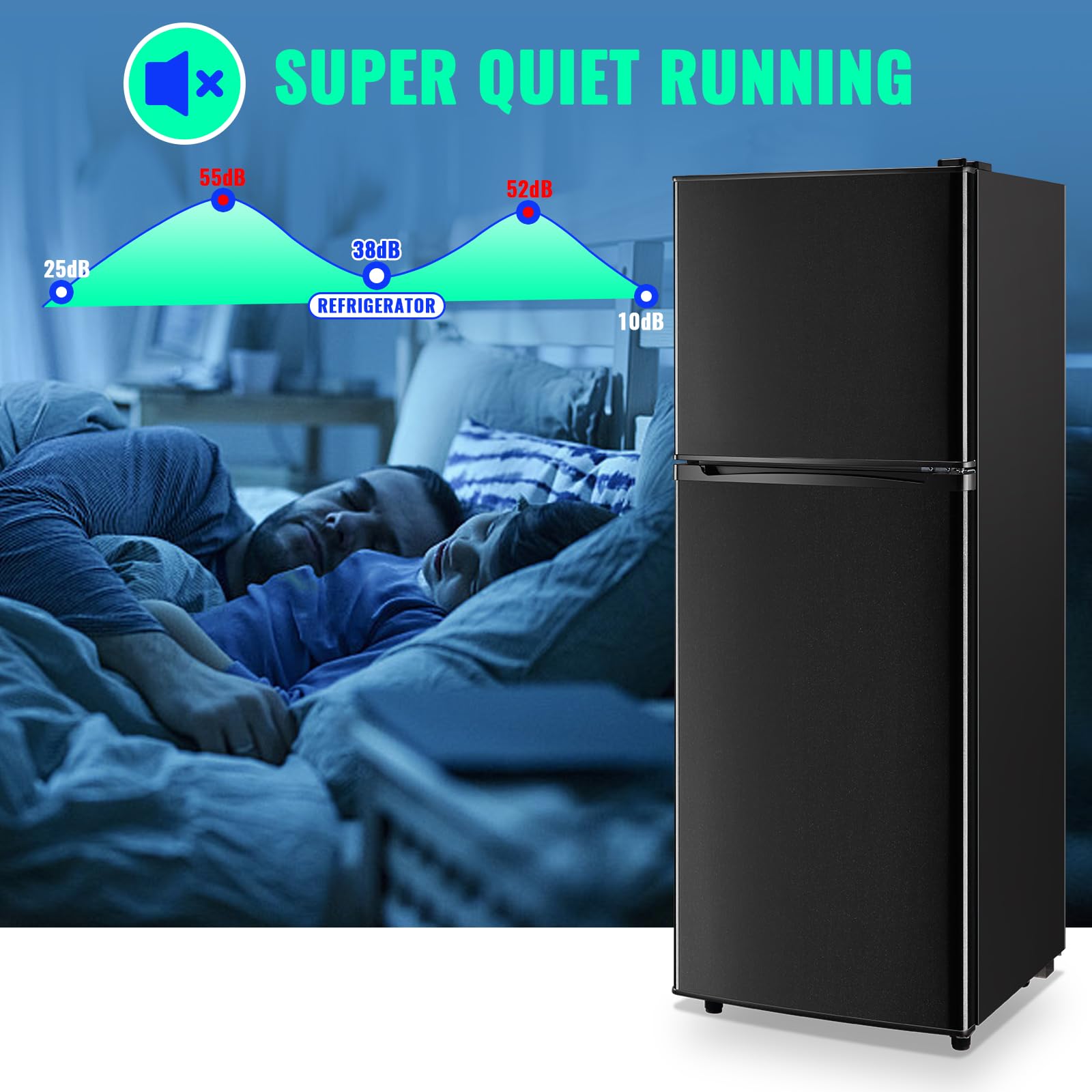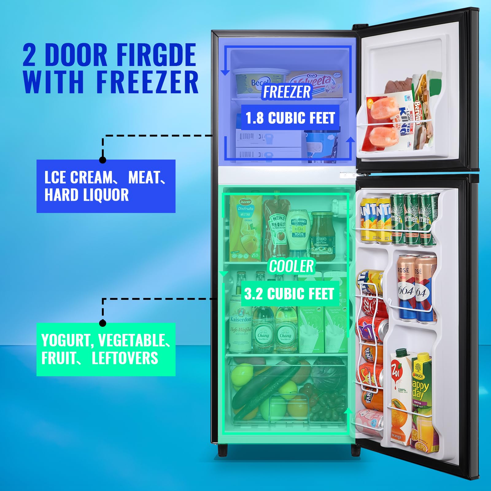 Extra Space: Refrigerator adopts double door design, independent space, avoid food spoilage. The freezing capacity is 1.8 cu.ft. Cold storage area capacity 3.2 cu.ft. Two doors with multiple sizes of beverage racks increase storage space. Make the interior cleaner