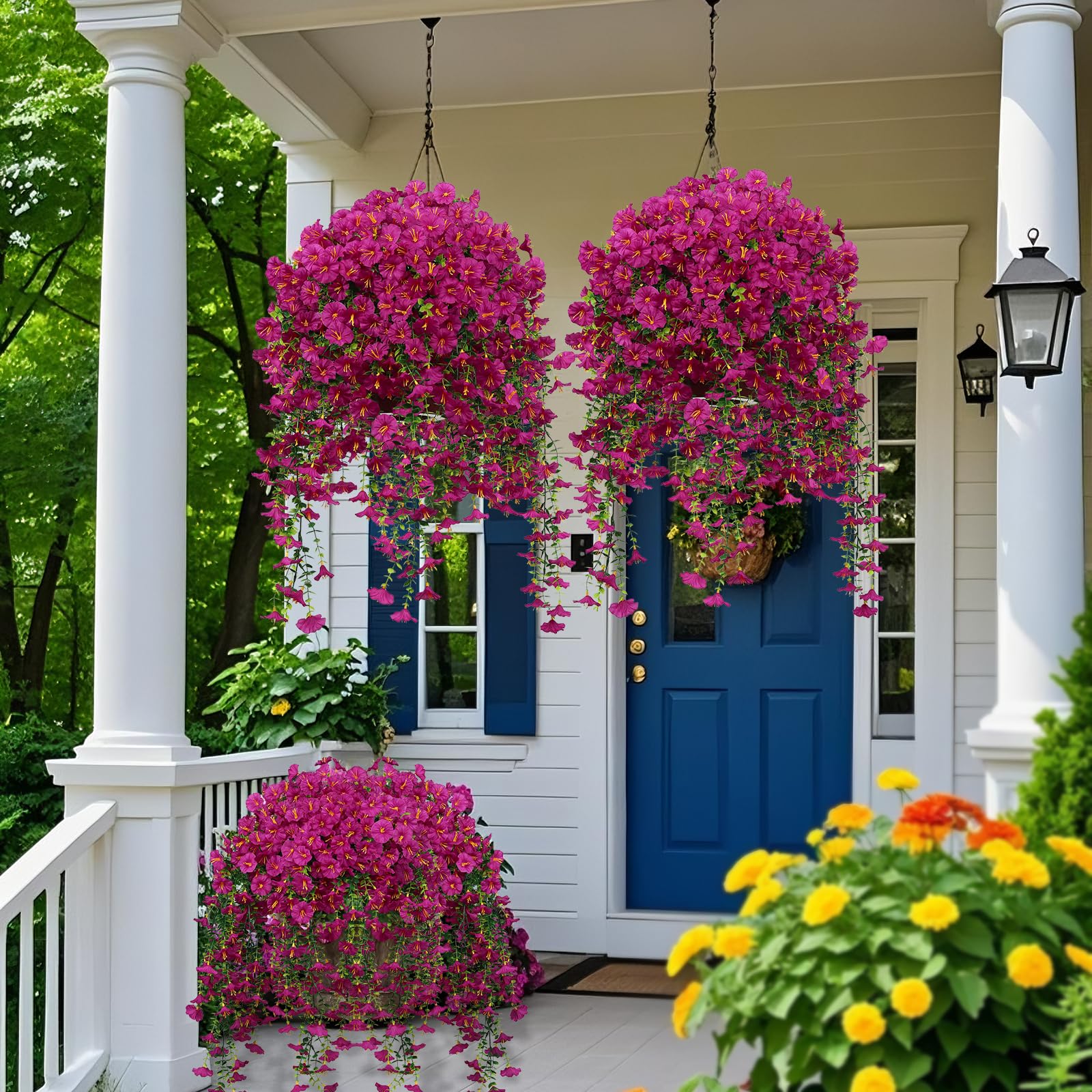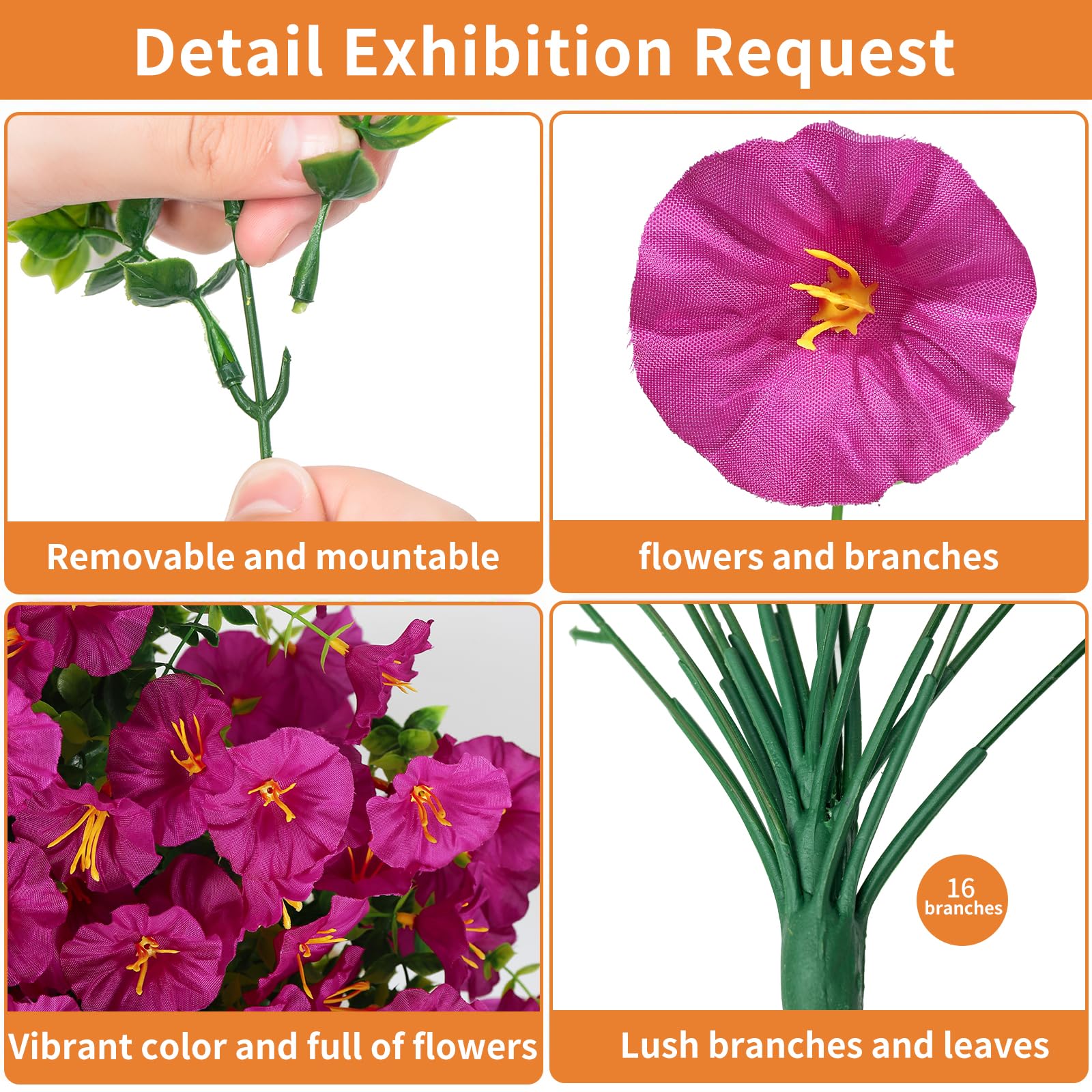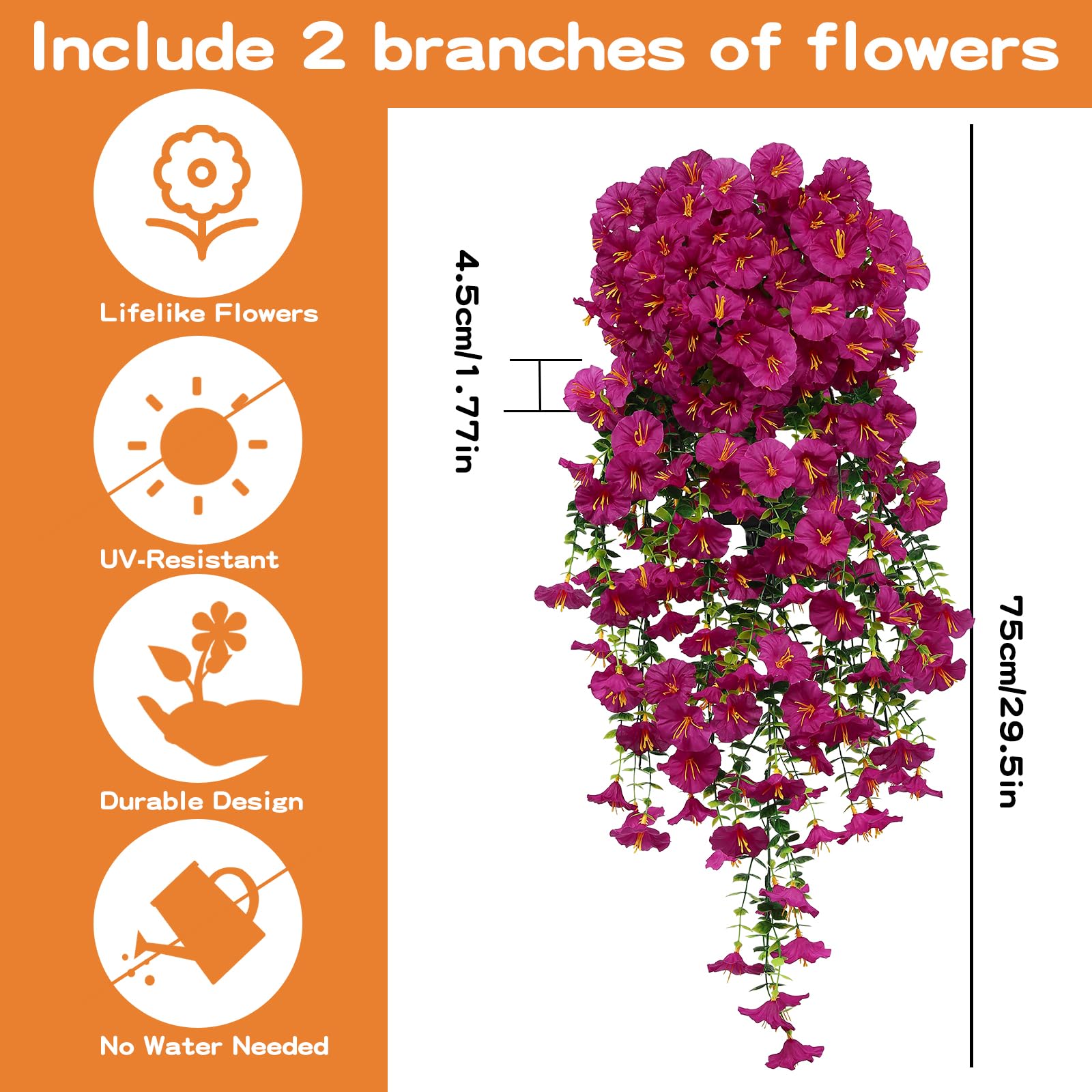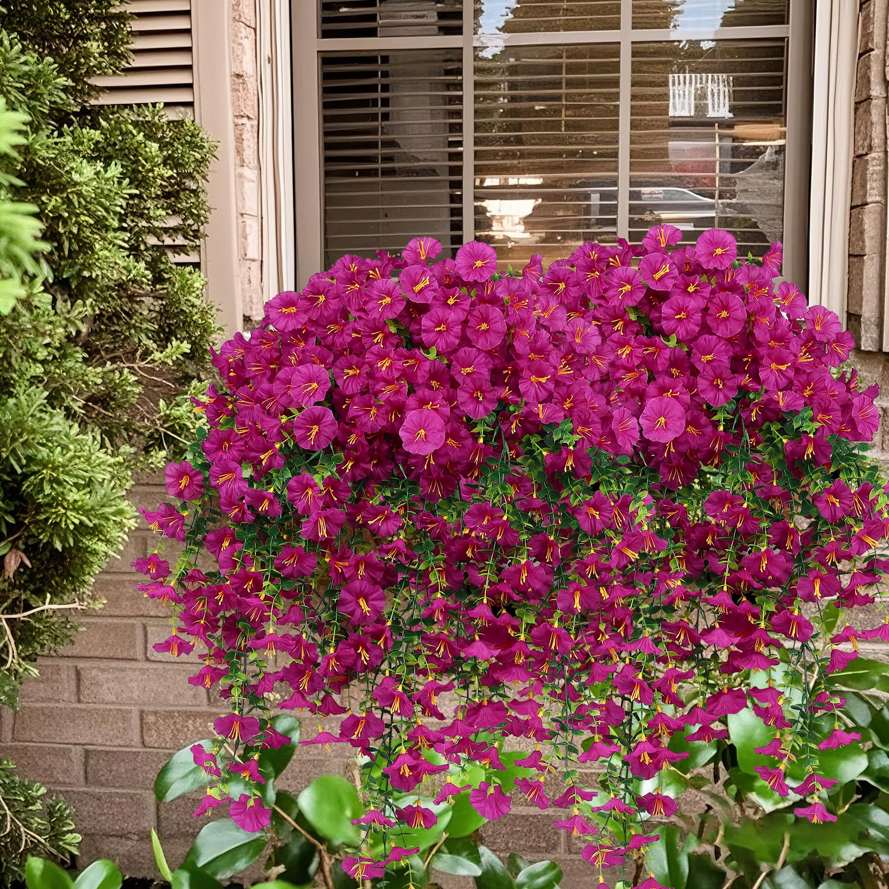 🌸 1. Premium 16-Branch Hanging Display Each set includes 2 bundles of lifelike artificial morning glory flowers with 16 branches per stem, designed for cascading elegance. The lush, multi-layered arrangement creates instant vertical interest in gardens, patios, or porches, transforming flat spaces into dynamic floral tapestries