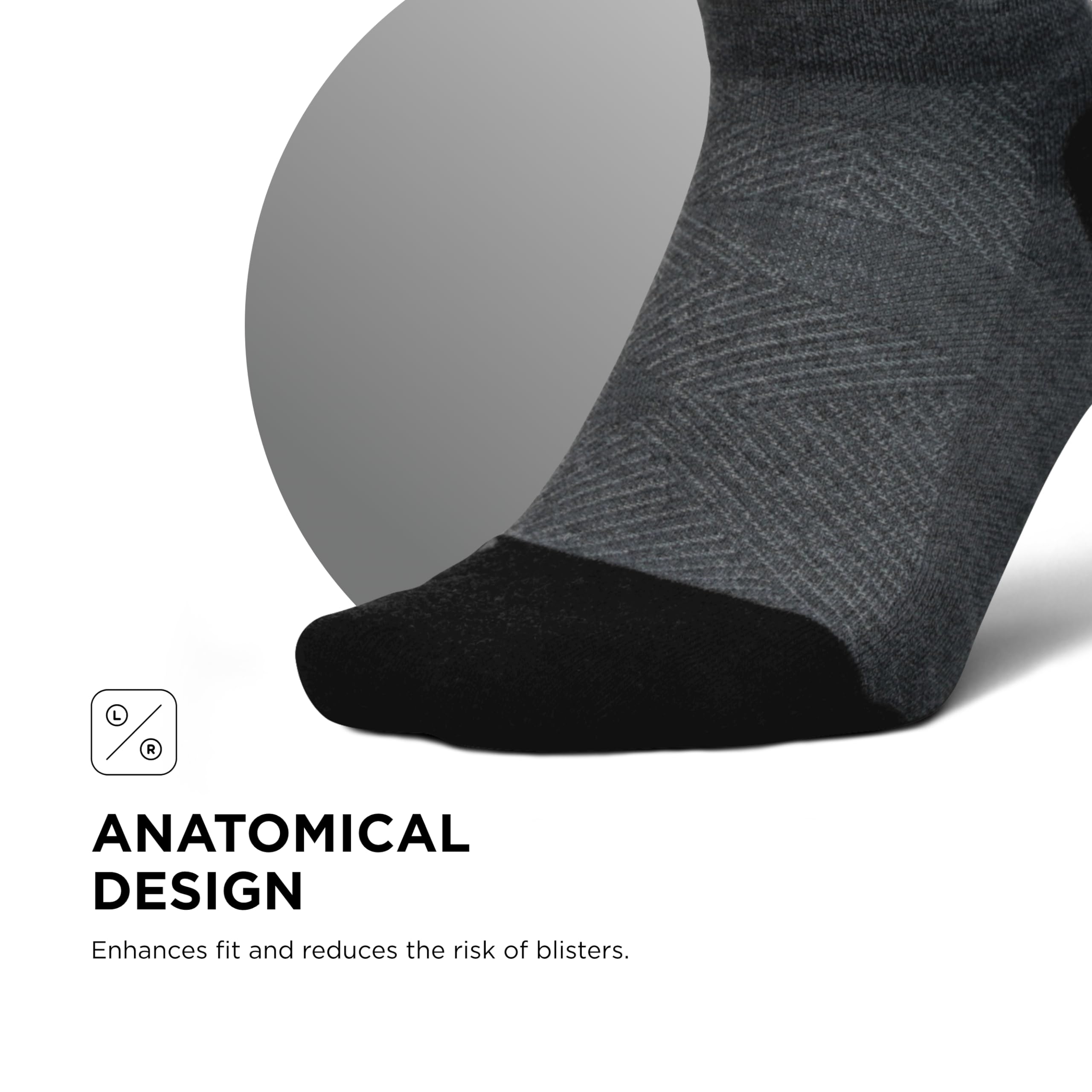 Custom-Like Fit: Targeted Compression, a zone-specific compression, and an anatomical design, creates a unique fit you can feel, reducing the risk of blisters and other common running sock issues