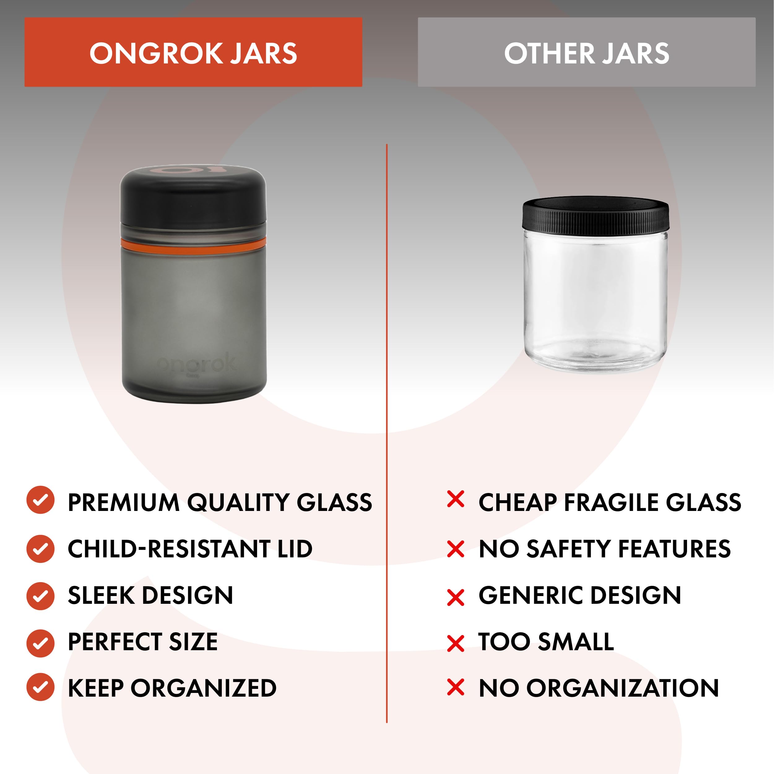 Upgraded Child-Resistant Lid: Each airtight jar is the perfect product saver with its new and improved child-resistant lid, giving you piece of mind. The sealed design preserves the flavor and aroma of its contents.