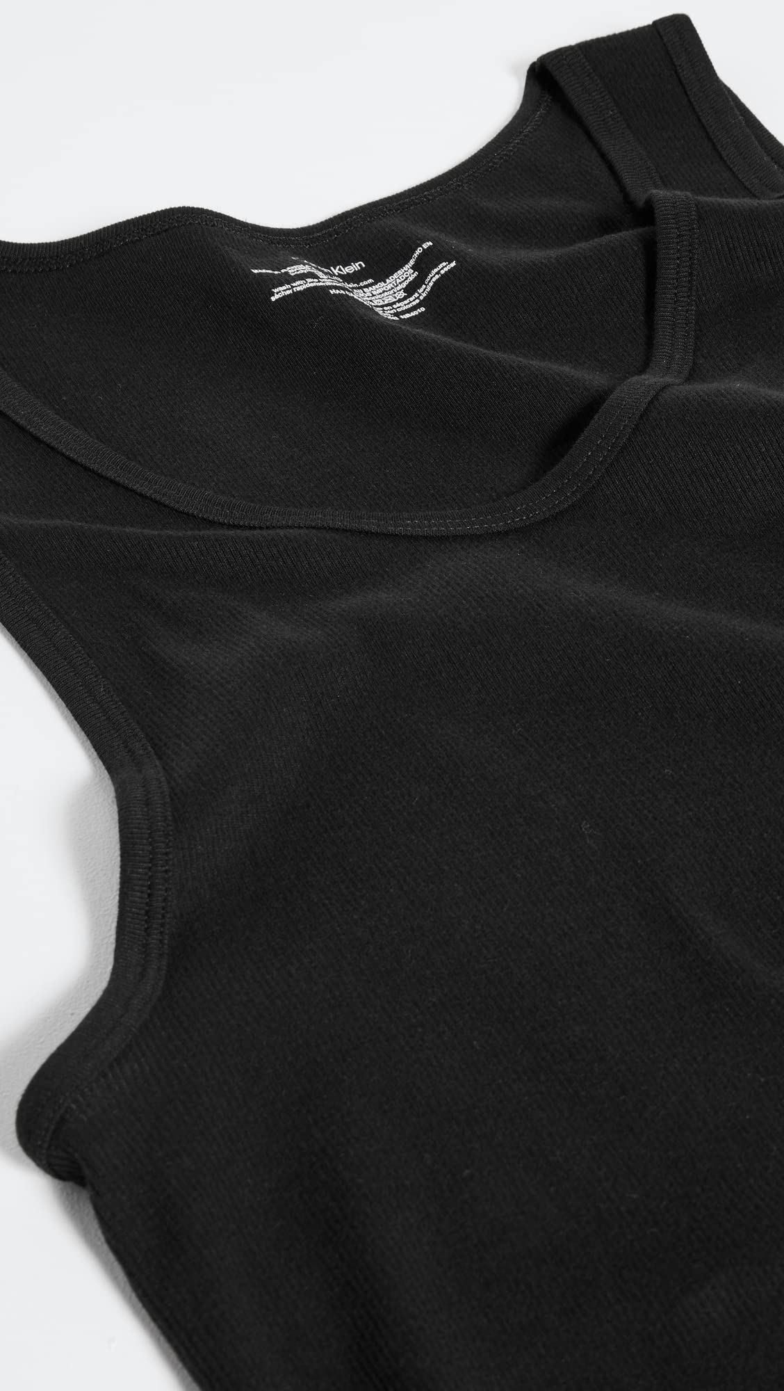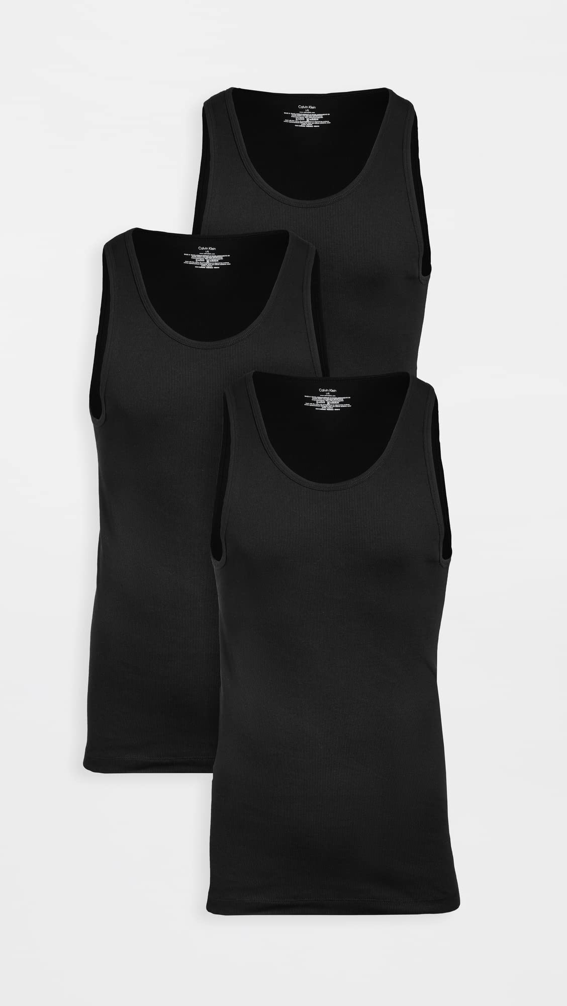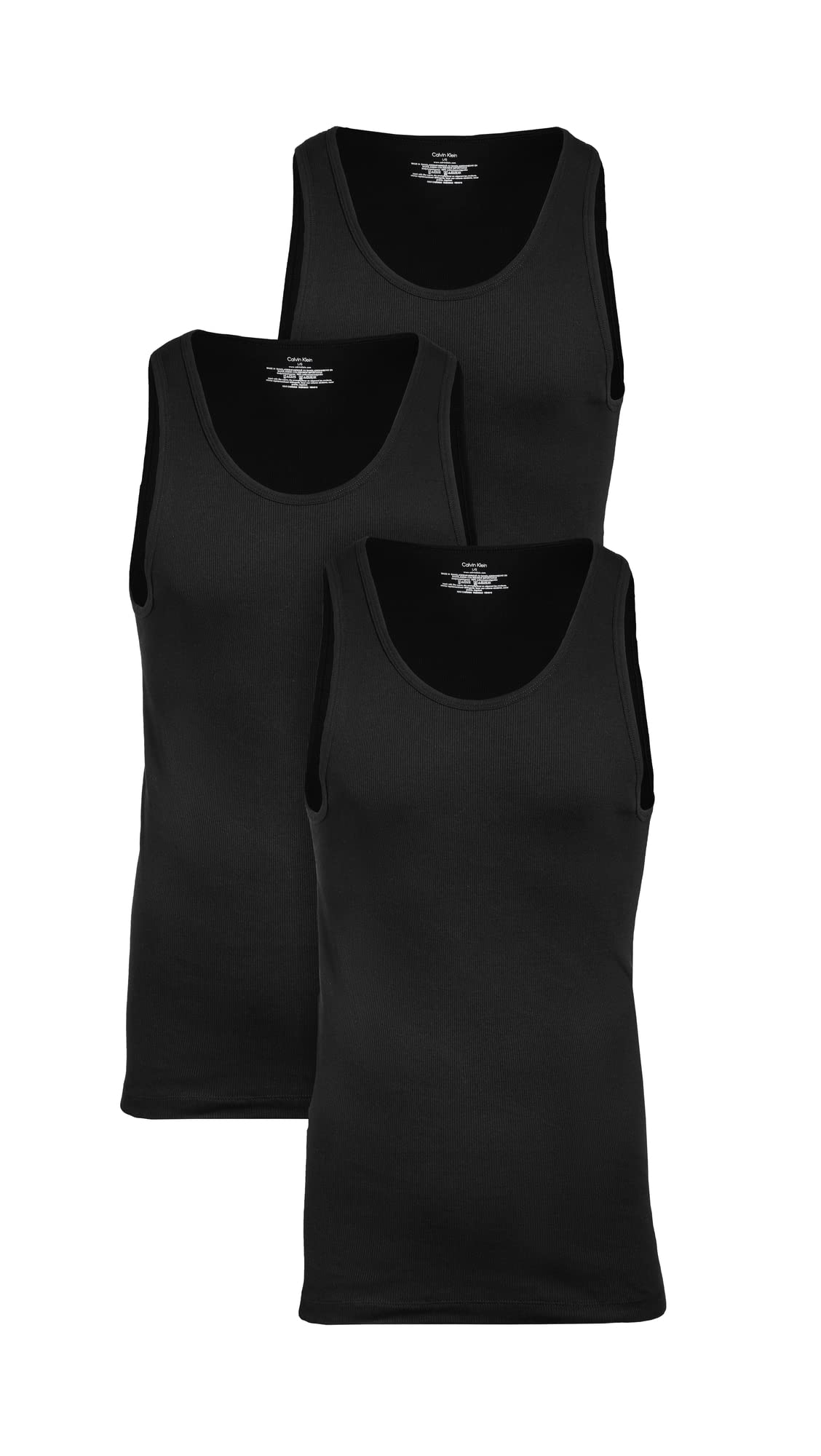 Description Cotton undershirts tank tops multipack, classic fit with no tags for comfort. Made of soft, breathable, durable cotton iconic Calvin Klein logo at left hem. 3-pack.