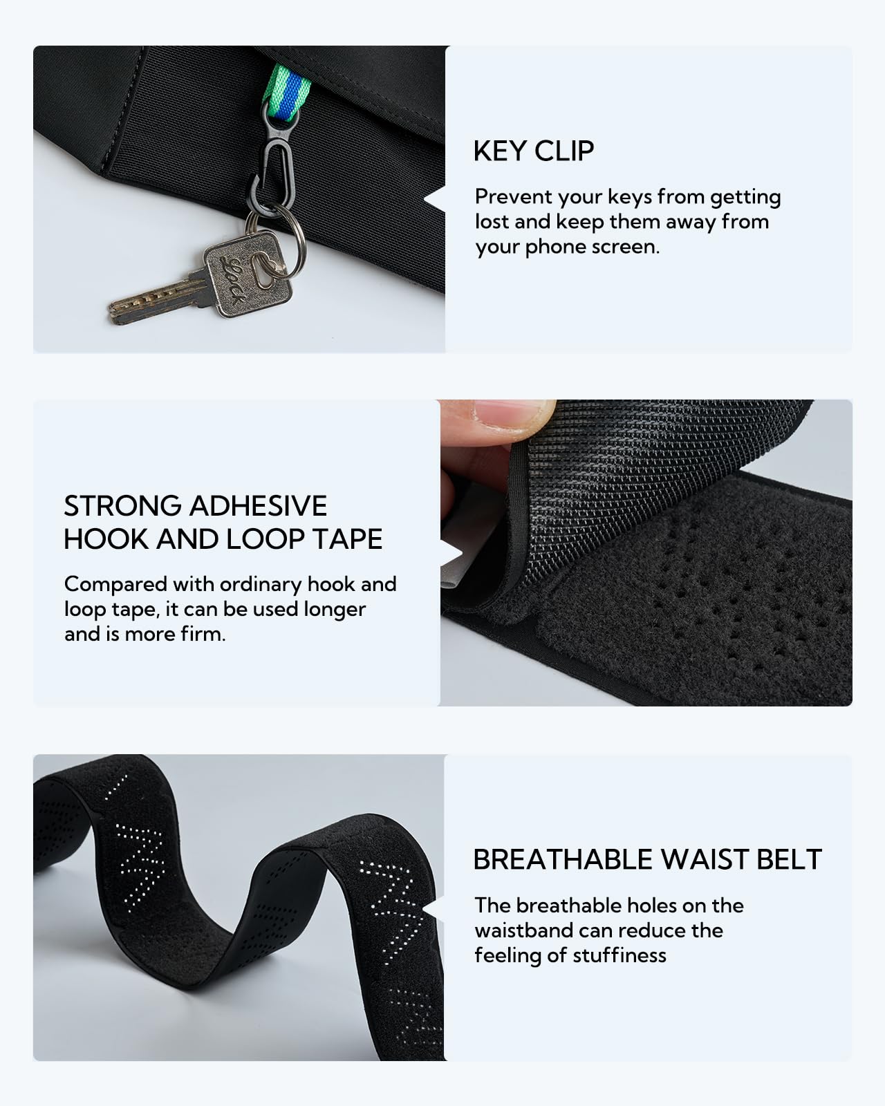 Lycra Laminated Fabric: The waist belt features a multilayer fabric design, water-repellent and breathable, sweat-absorbing and dry, soft and skin-friendly, for a more comfortable running experience