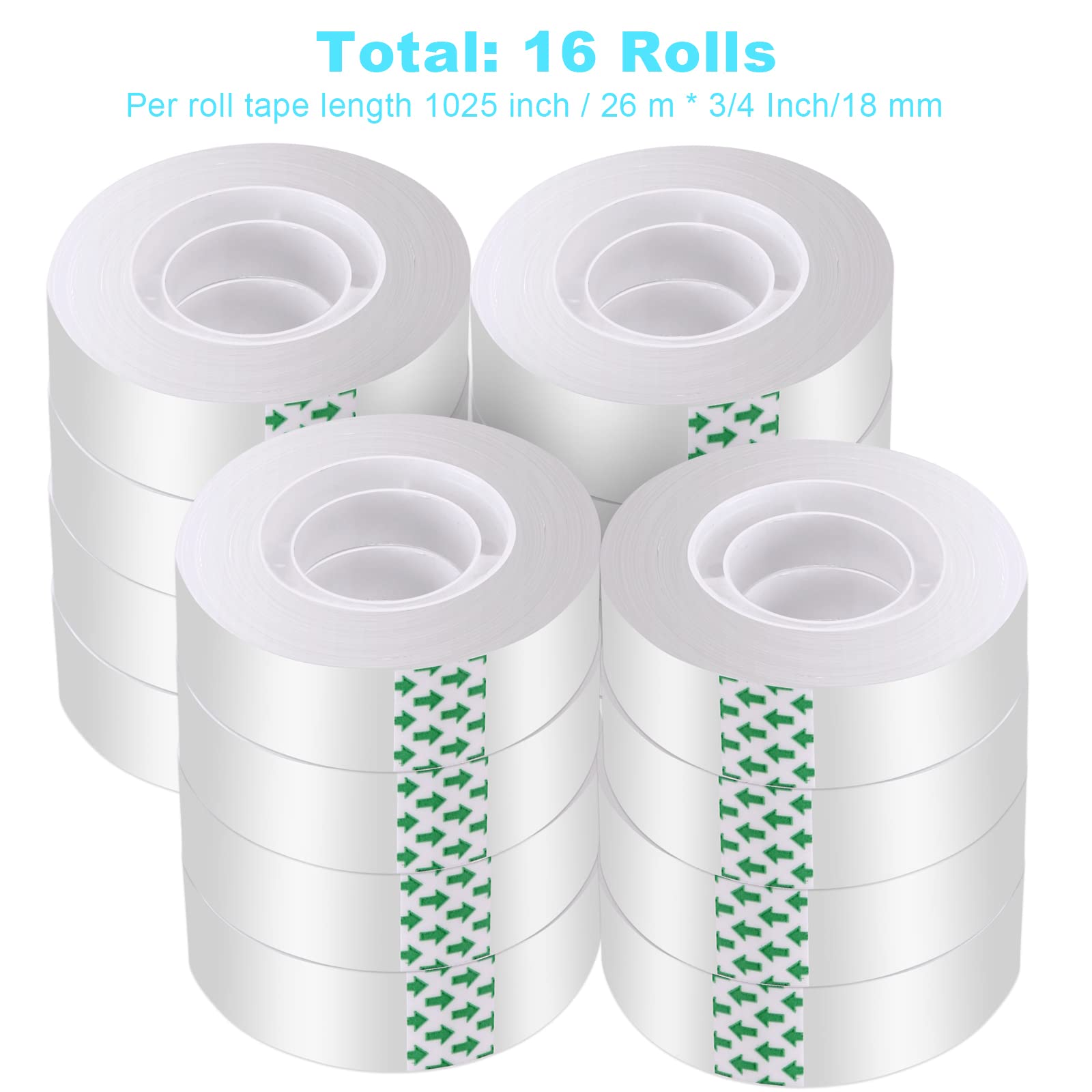 16 Rolls Clear Tape for Gift Wrapping: Includes 16 rolls transparent tape refills rolls, gift tape enough to meet your needs like sealing, wrapping, mending and DIY. office tapes bulk for wrapping gifts, desk supplies, home, school.