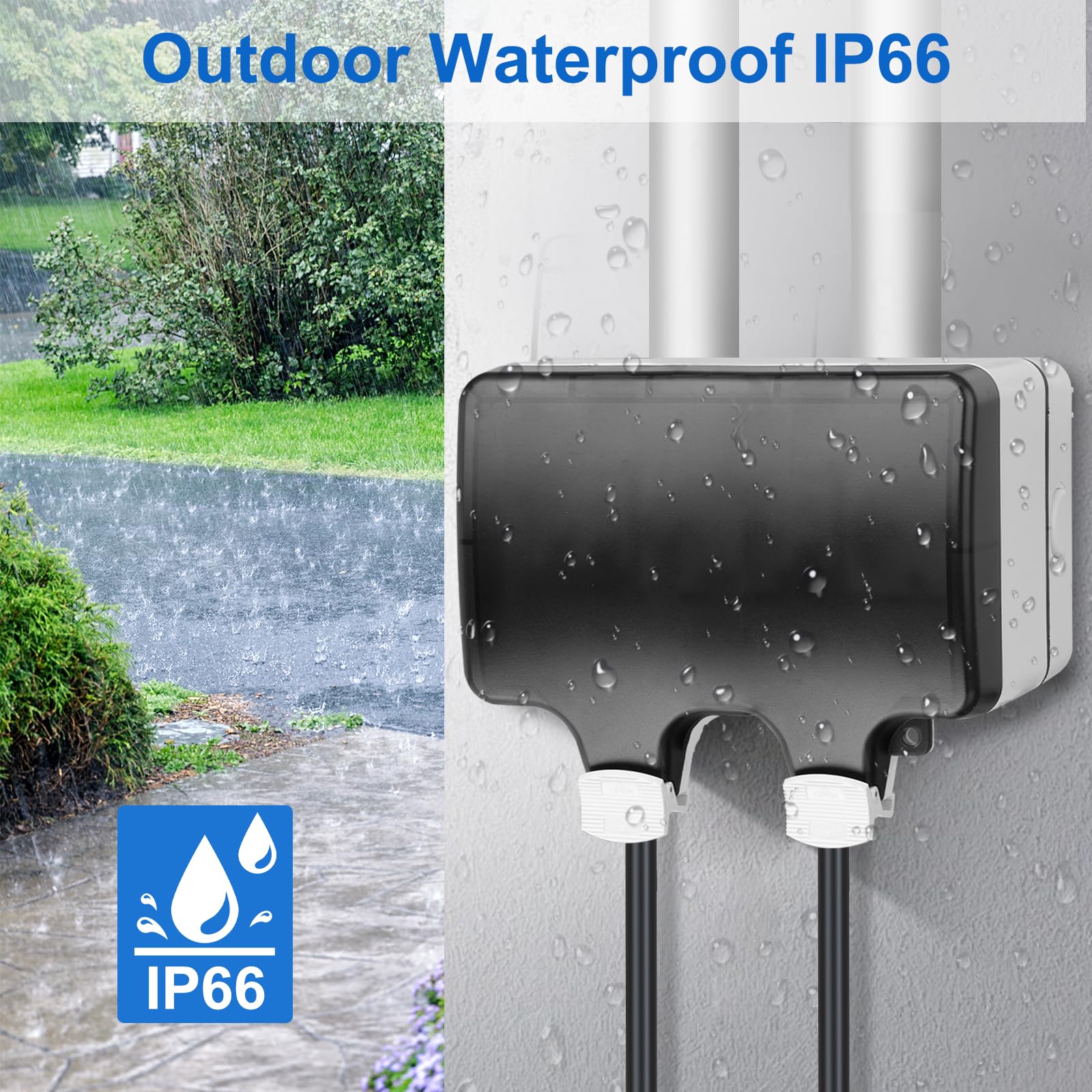 【 Widely Applications 】Our Outdoor Outlet Box is perfect for use in powering outdoor swimming pools, garden, sheds, car garage, workshop, patio, lawn, building sites and commercial applications, and can also be used in indoor kitchens, laundry room, bathroom and basement.