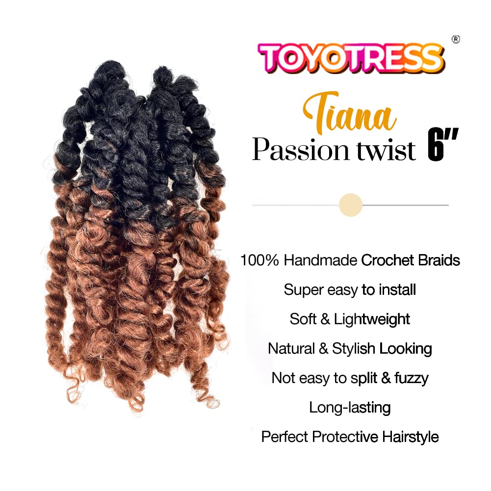 Brand Name: Toyotress TIANA passion twist hair pre-twisted made of bohemian hair, pre-looped passion twists crochet braids braided by Professional hair stylist.