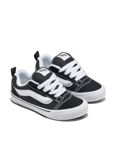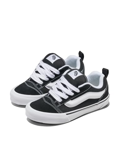 Description The Vans Big Kids’ Knu Skool takes a late-’90s silhouette and turns it into something new, pairing oversized details with everyday wearability. Inspired by the original Old Skool, this low-top sneaker features wide chunky laces, a puffed-up tongue, and a 3D Sidestripe for standout style in any setting. Built with durable suede and canvas uppers, the boys' and girls' Knu Skool can handle school days, weekend hangouts, and everything in between. Vans’ signature rubber waffle outsole provides reliable traction and flexibility on the go, while padded tongues and collars deliver a snug, comfortable fit that reduces rubbing during long days on their feet. Crafted with sturdy vulcanized construction, these youth sneakers are made to last while keeping kids comfortable and confident through every adventure. Since 1966, Vans has inspired creativity, individuality, and self-expression – because having fun never goes out of style.