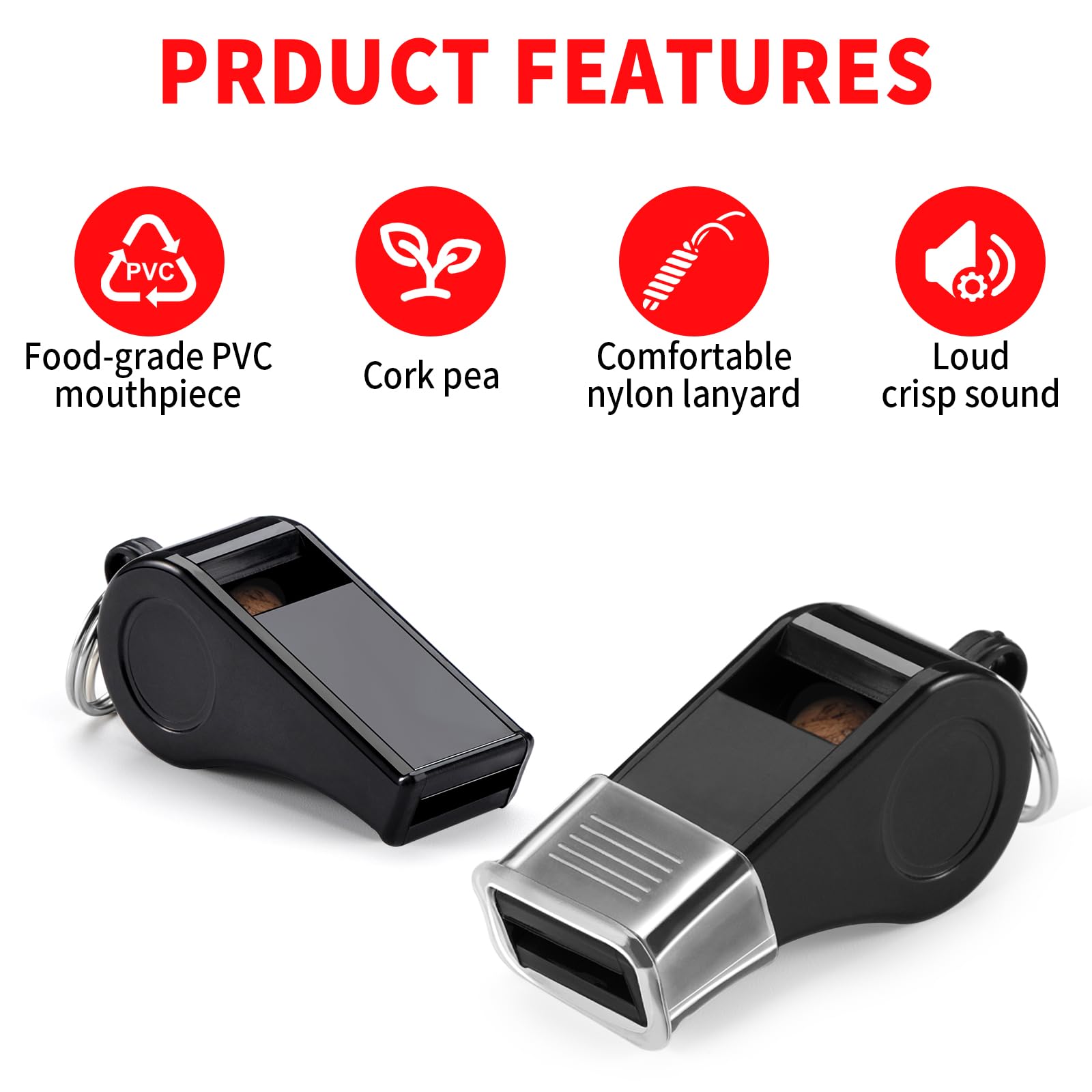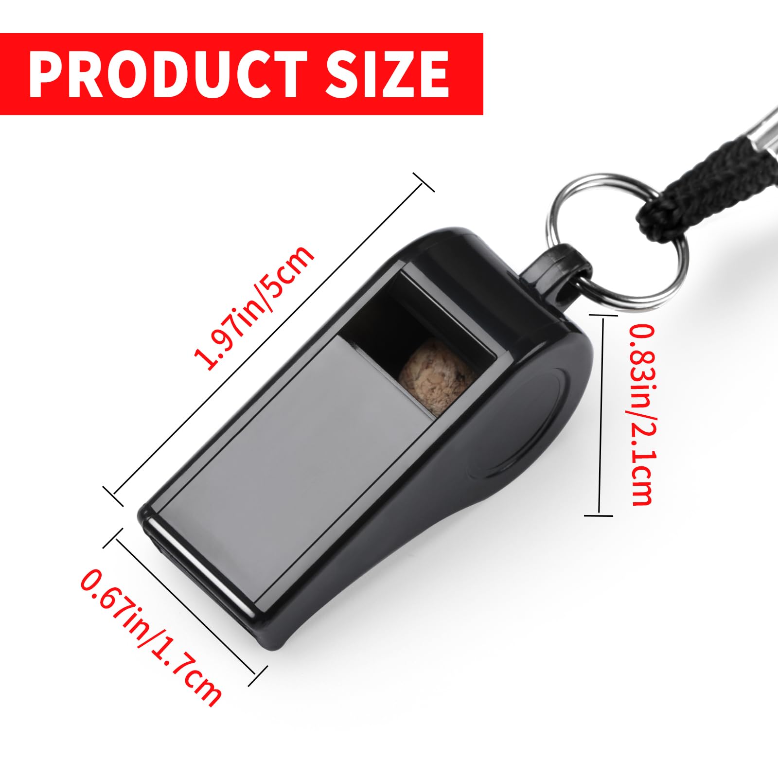 DURABLE CONSTRUCTION: These referee whistles are made of high-quality plastic that is cost-effective and designed to withstand rigorous use. Lightweight yet sturdy, their versatility makes them perfect for sports events, outdoor adventures, and emergency situations