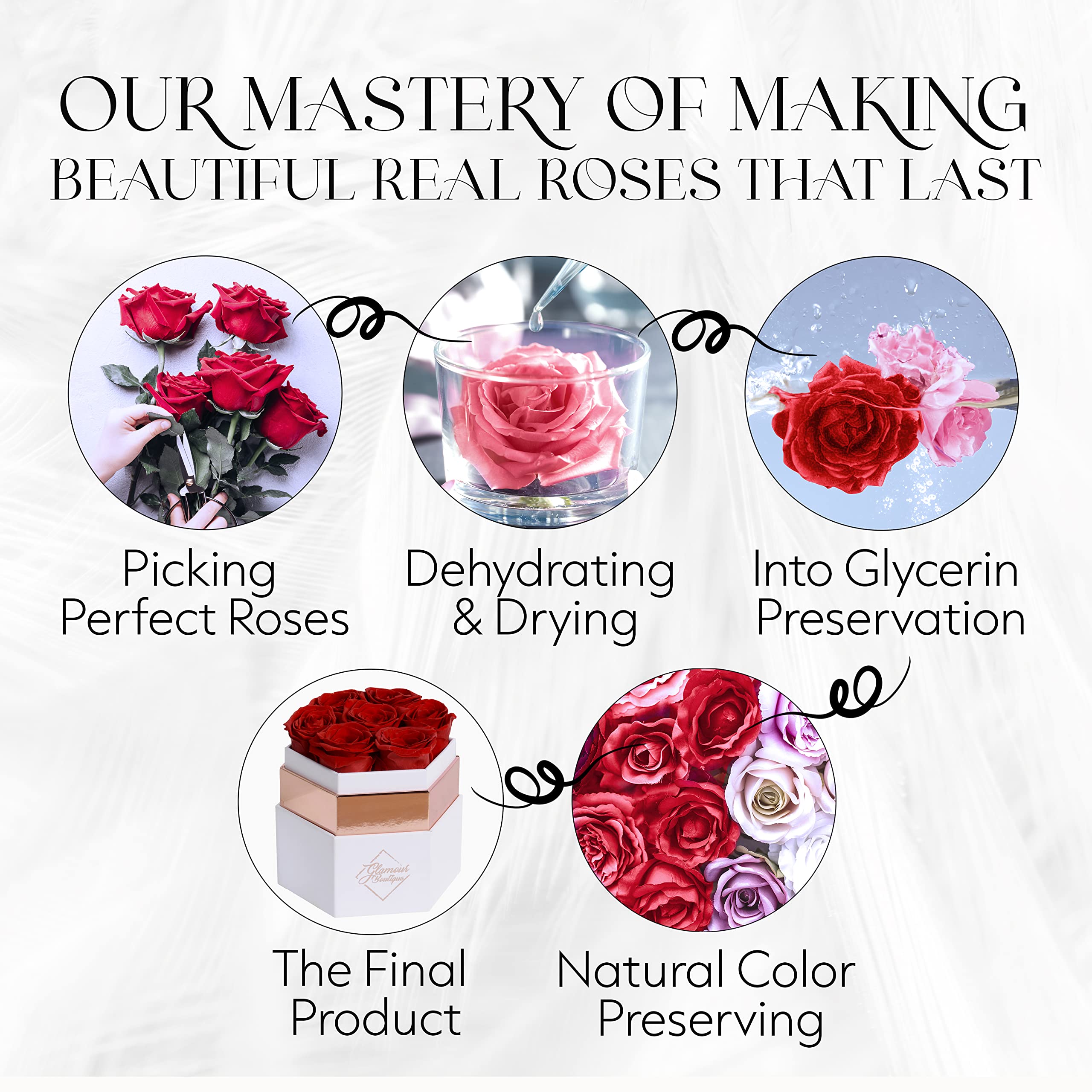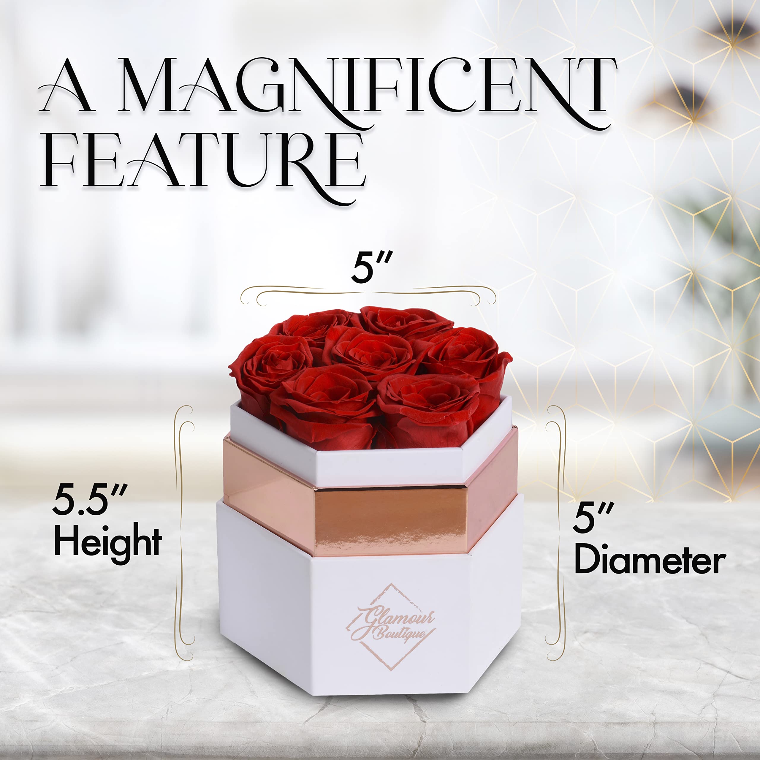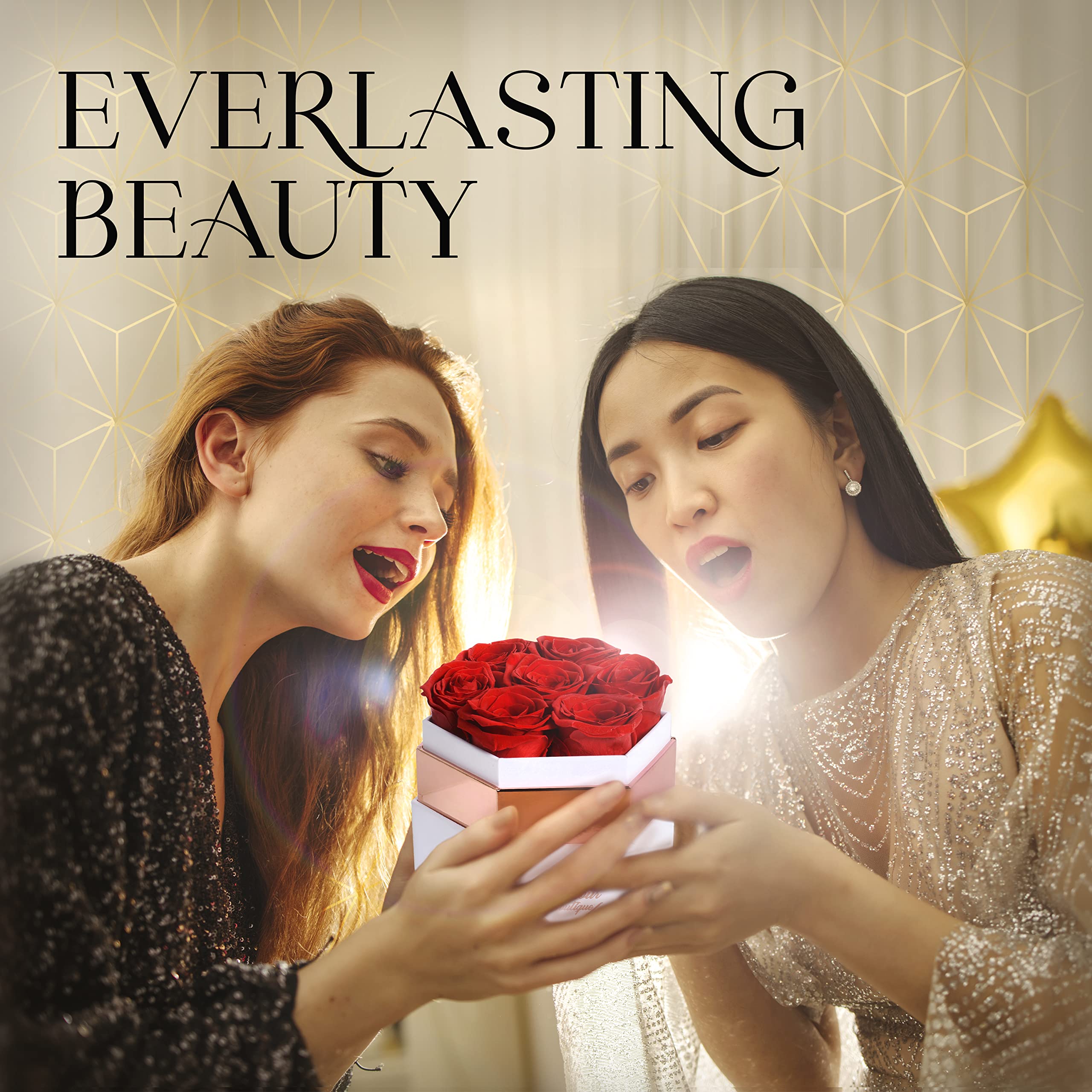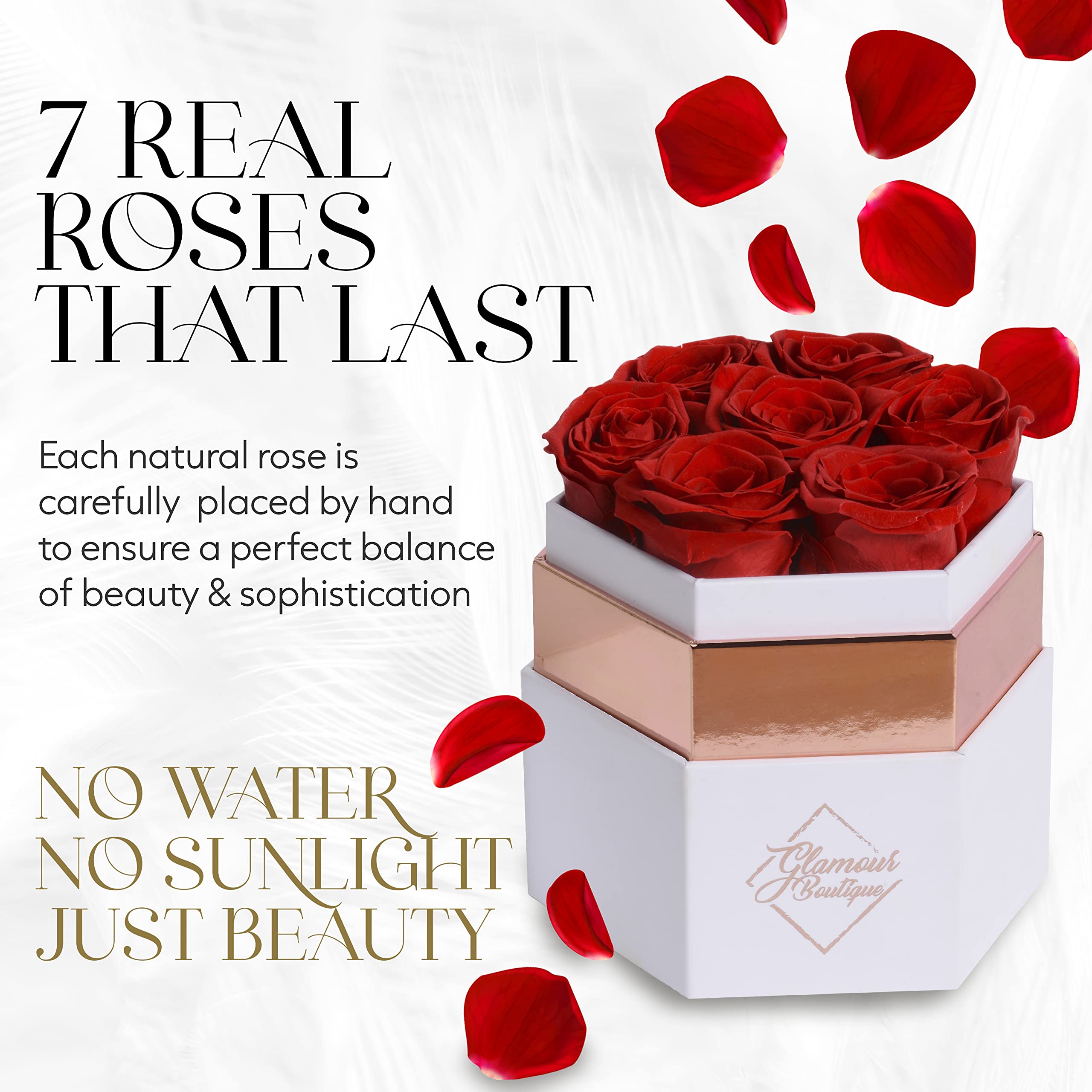 Long-Lasting Roses: Made of premium fresh rose with a unique preservation process, our rose forever box lasts for 1 to 3 years. It has a total of 7 roses that are carefully and manually assembled for a personal touch.