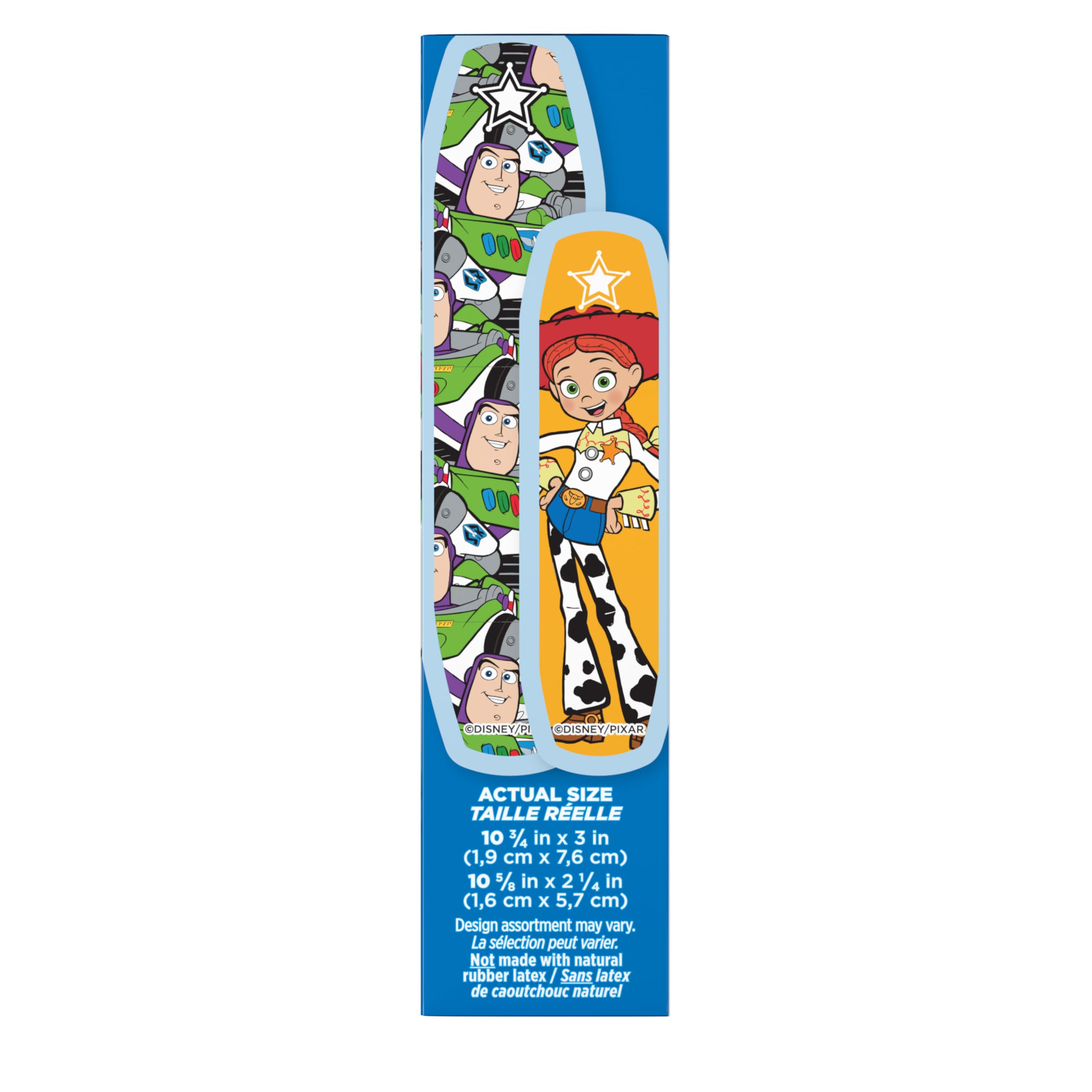 Character bandages designed with fun Disney and Pixar Toy Story 5 graphics in adorable and colorful designs with characters Woody, Buzz Lightyear, Jessie & Bullseye from the animated movie