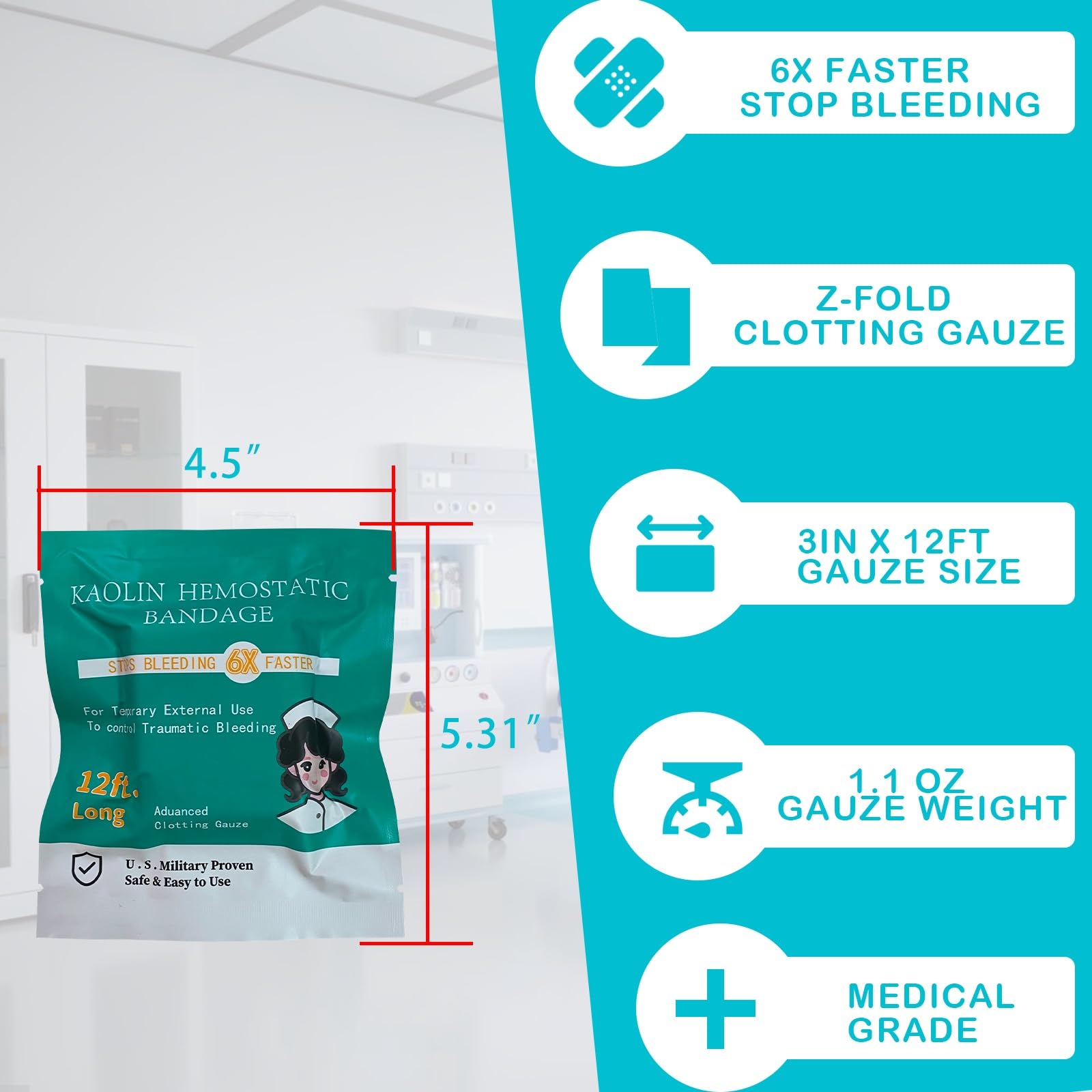 "Stops Bleeding Faster Than a TikTok Trend Goes Viral" This ain’t your grandma’s gauze. Packed with kaolin mineral magic, our Z-fold combat gauze kicks your body’s clotting process into overdrive. Slap it on a wound, and boom—blood flow slows in seconds. Perfect for deep cuts, gunshot prep (hey, better safe than sorry), or that time Uncle Bob tried to "prune" the cactus.