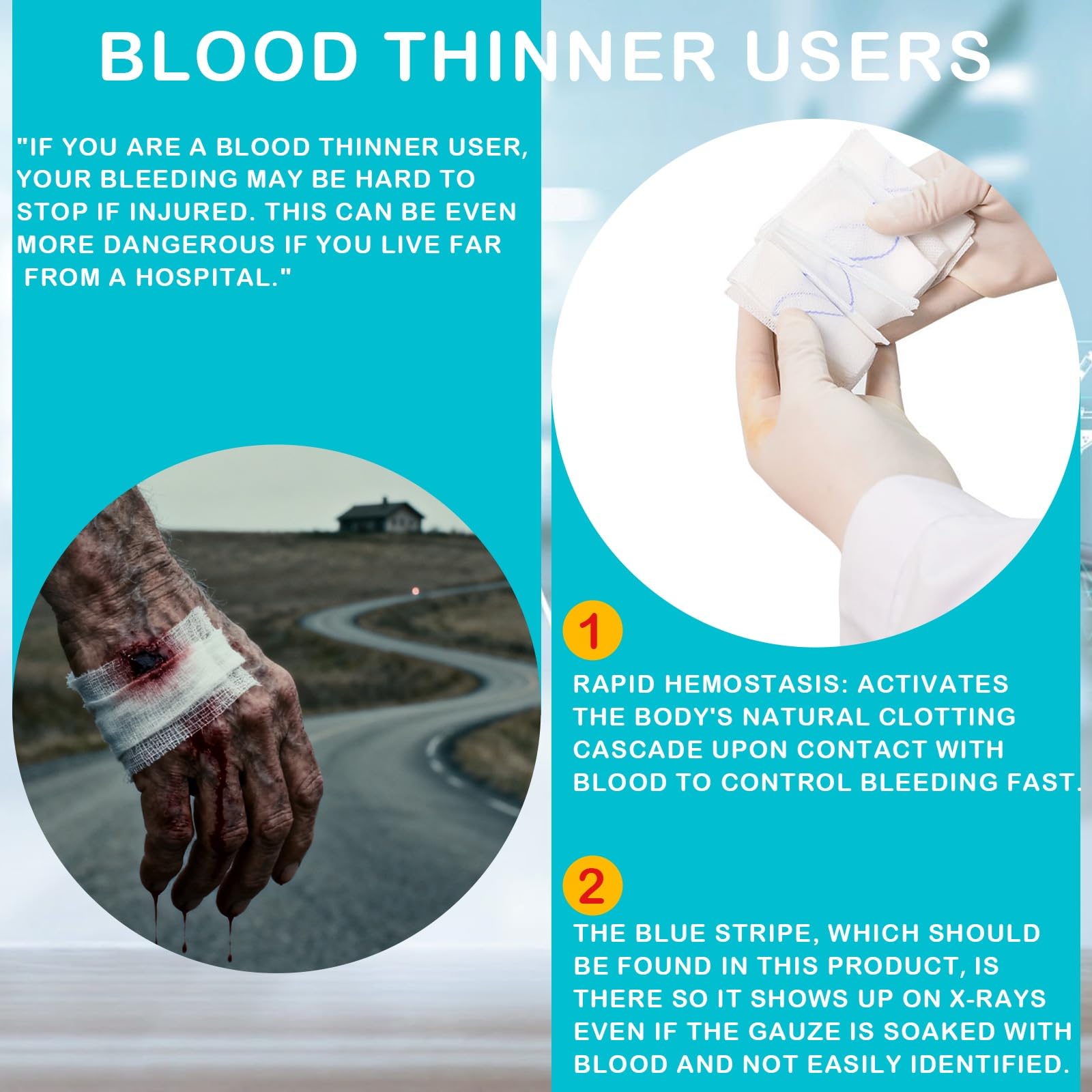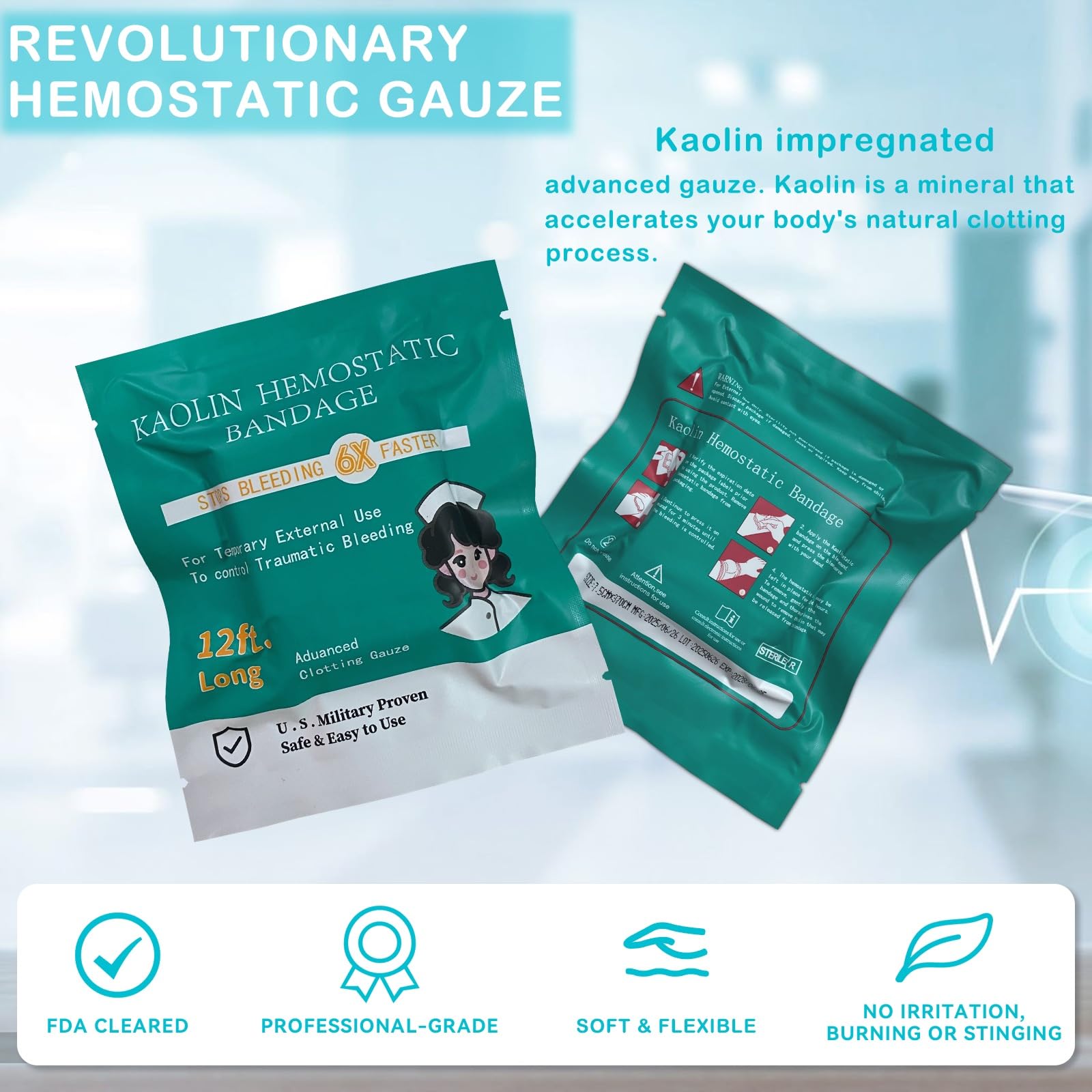 "Works Like Duct Tape for Your Veins (But Way Less Sticky)" Forget flimsy Band-Aids. Our kaolin-infused gauze expands like a boss when blood hits it, sealing wounds tighter than a conspiracy theorist’s bunker. Bonus: Zero animal goop, no weird plant stuff—just pure mineral power that plays nice with allergies.