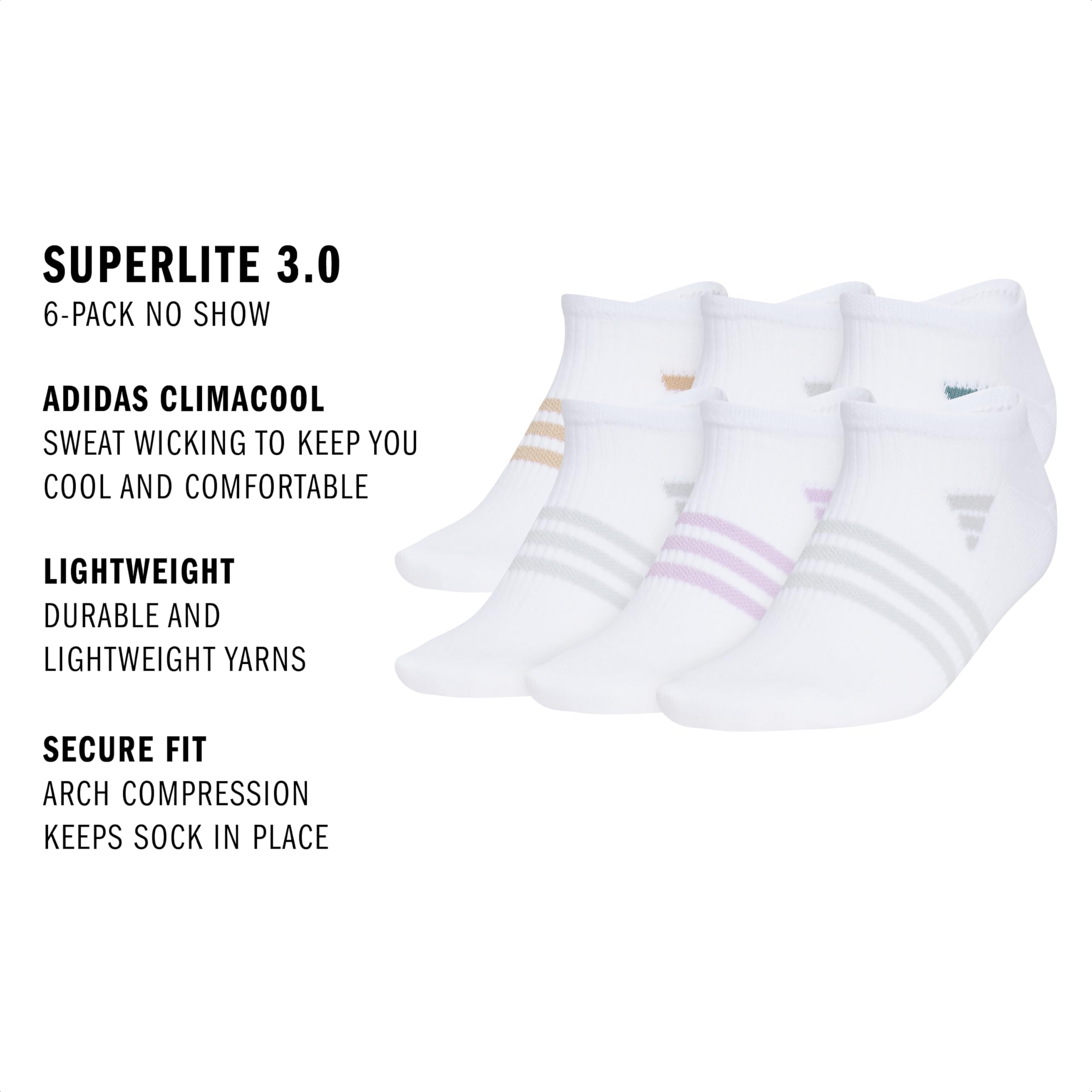 Description Who wants to think about their feet all day? With a super-light construction and no-show length, these adidas socks stay off your mind while upping your comfort. Arch compression helps support your feet, while moisture-wicking yarn keeps them sweat-free and happy.