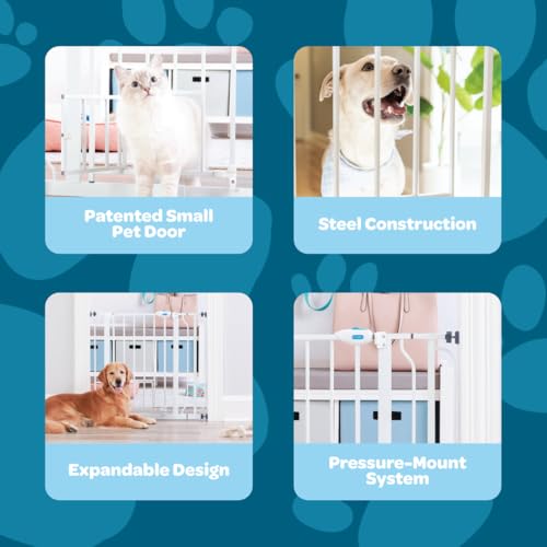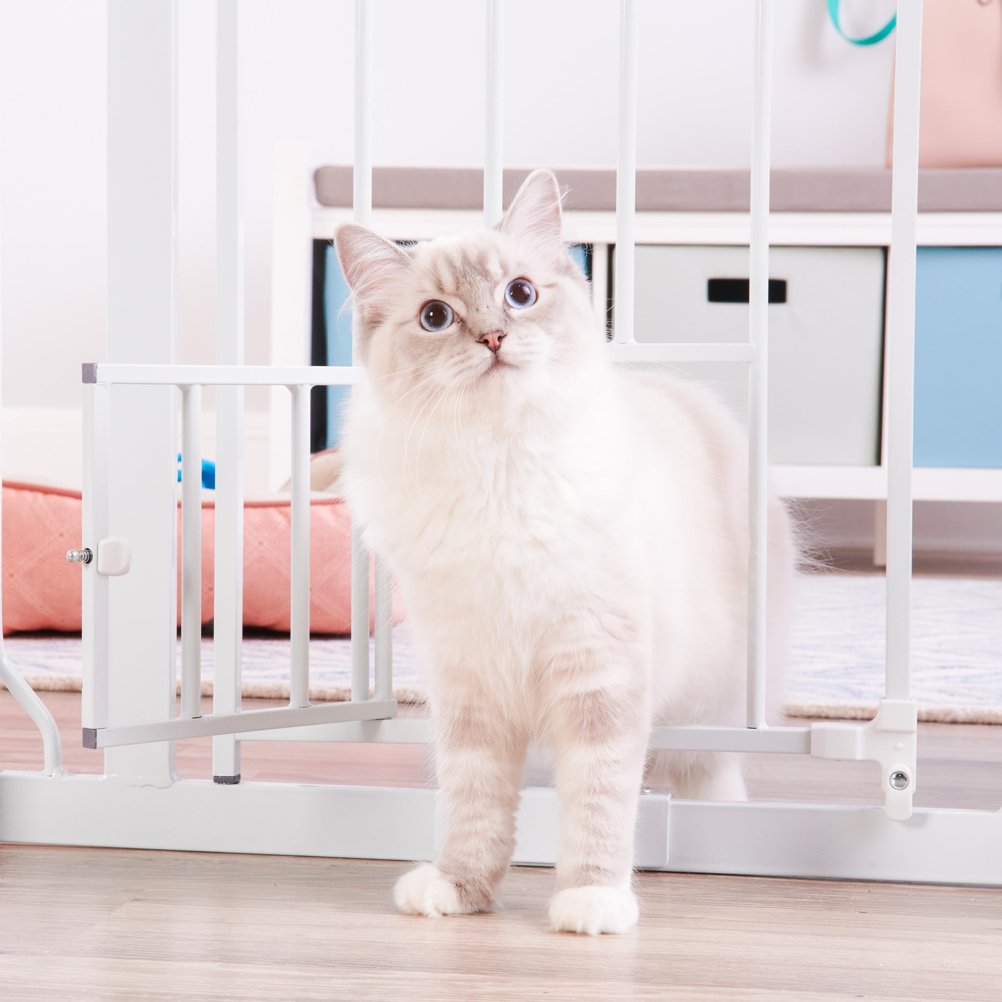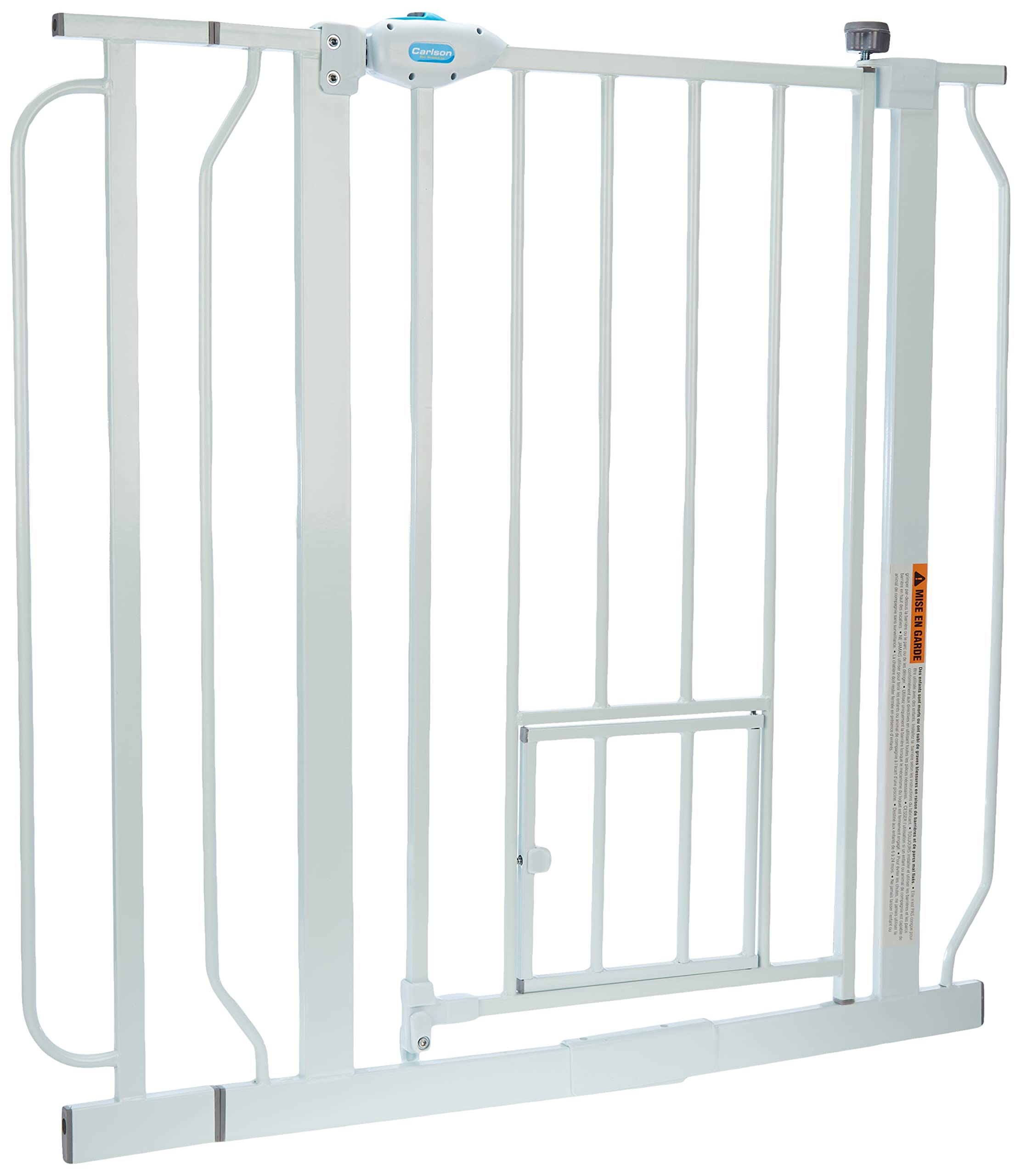 An essential tool for homes with pets, the Carlson Extra Wide Walk-Thru Pet Gate with Small Pet Door is a convenient, chew-proof way to contain and protect both your pet and home. The sturdy pet gate can be operated with ease and is designed to make passing through the gate frequently a breeze. If the thought of putting holes in your walls makes you shudder, our pressure-mount system makes installation simple. Because openings vary in size, this gate is expandable and ideal for openings between 29” - 36.5”. The same convenience is provided to your pet as the gate features an 8” x 8” door letting small animals pass through while keeping everyone else out.