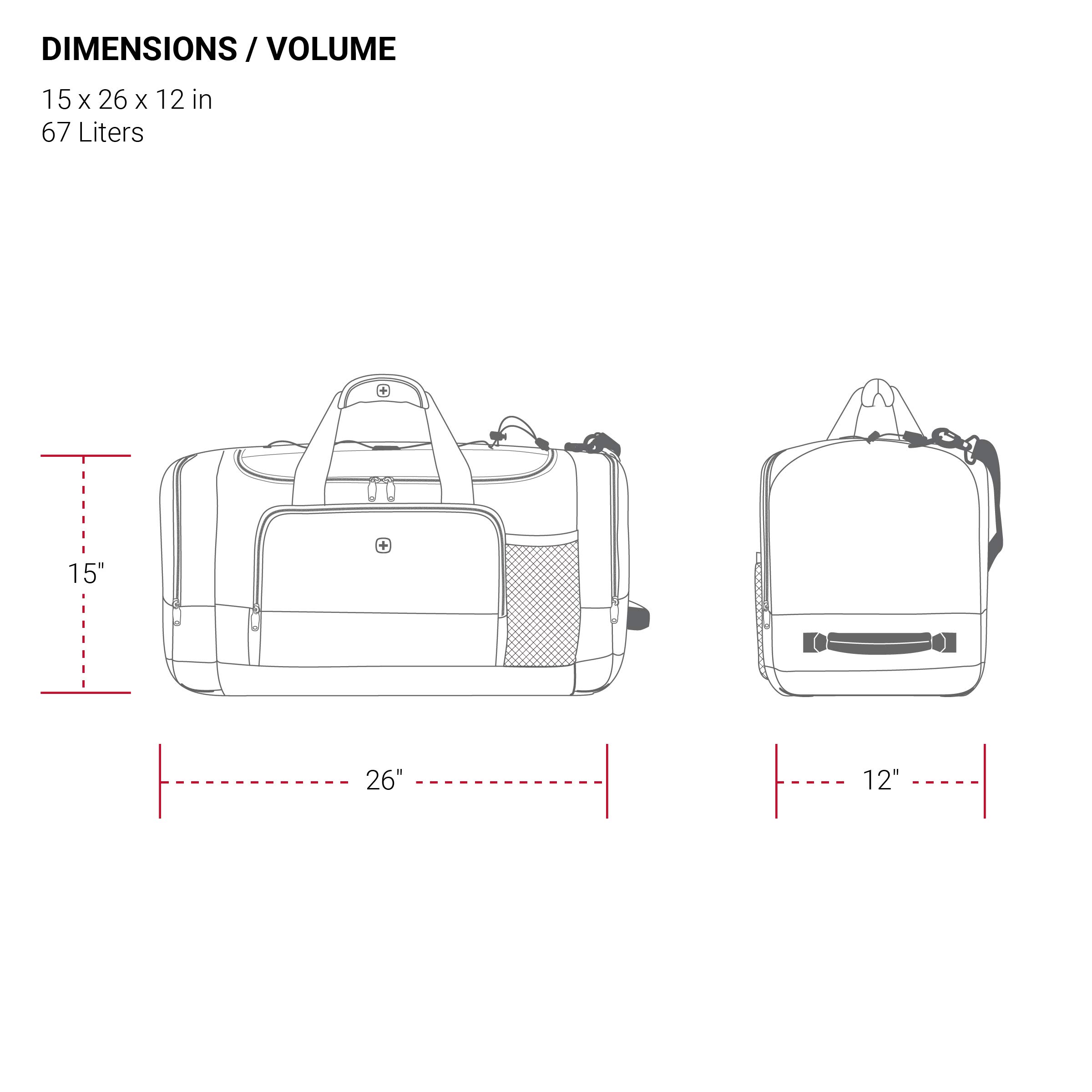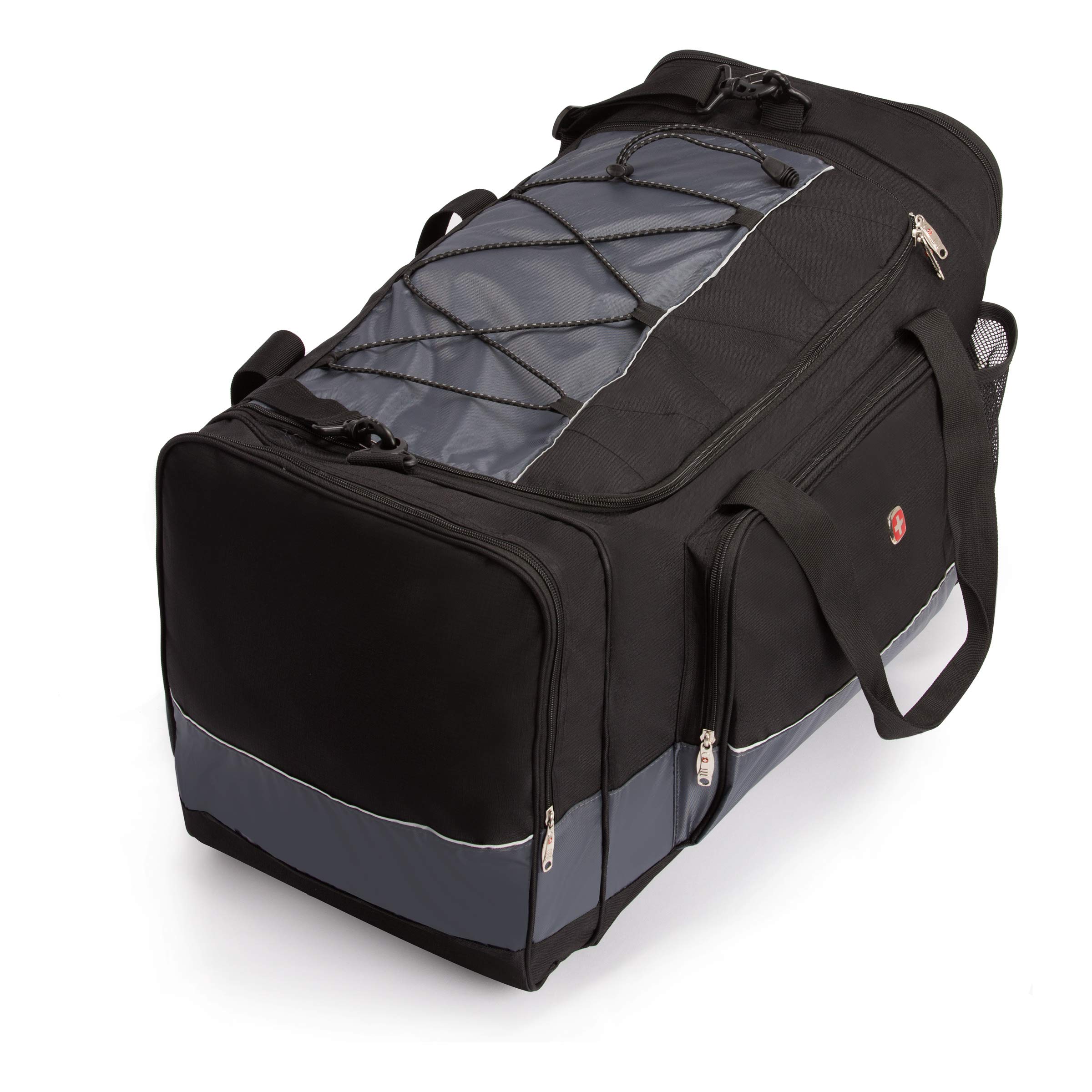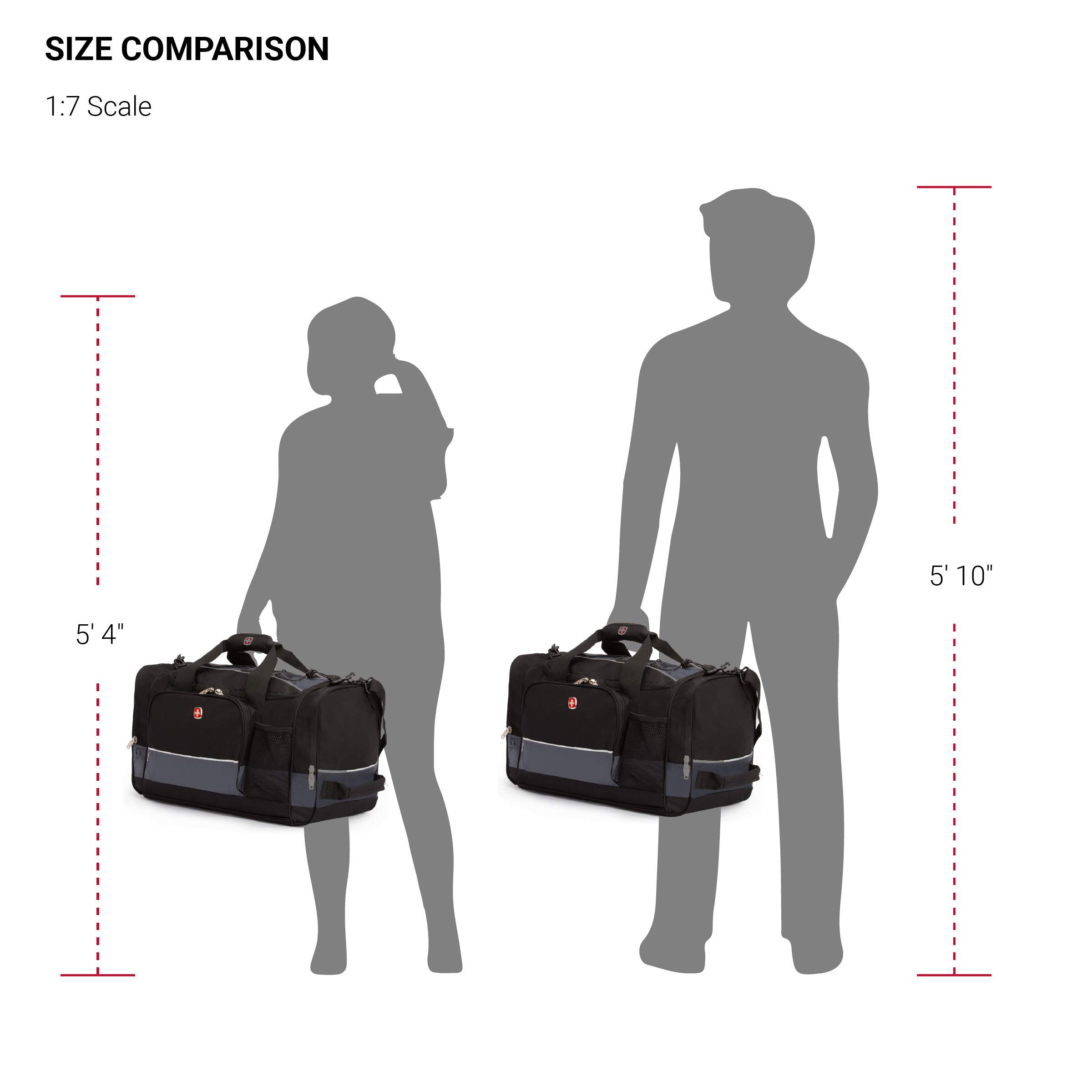 Description Are you looking for a reliable and spacious travel or workout bag? Look no further than the SwissGear Apex travel and gym bag for women and men. The perfect travel duffel bag for women and men, this rugged workout / weekend bag is made of durable, abrasion-resistant polyester made to withstand heavy use and harsh conditions. An ideal overnight bag for women and men, this packable duffle bag features a zipper closure and a large main compartment, 2 end pockets, and a front organizer pocket for storing writing utensils, snacks, and keys. Plus, it has a stretch mesh water bottle pocket to help you remain hydrated. The top bungee-cord storage system is perfect for quickly storing items, such as a light jacket or an umbrella. You can also lift and maneuver this workout / weekender bag for women and men using the reinforced top and side handles, or throw it over your shoulder with the removable, adjustable shoulder strap to enjoy hands-free mobility. The SwissGear Apex Travel Duffle Bag is the perfect solution for your travel needs. With this carry-on duffel bag, you can travel with convenience.