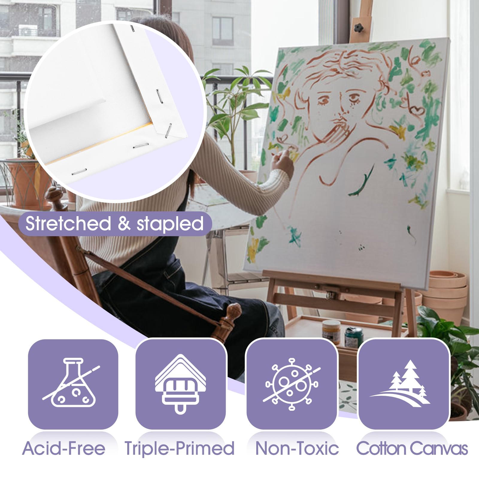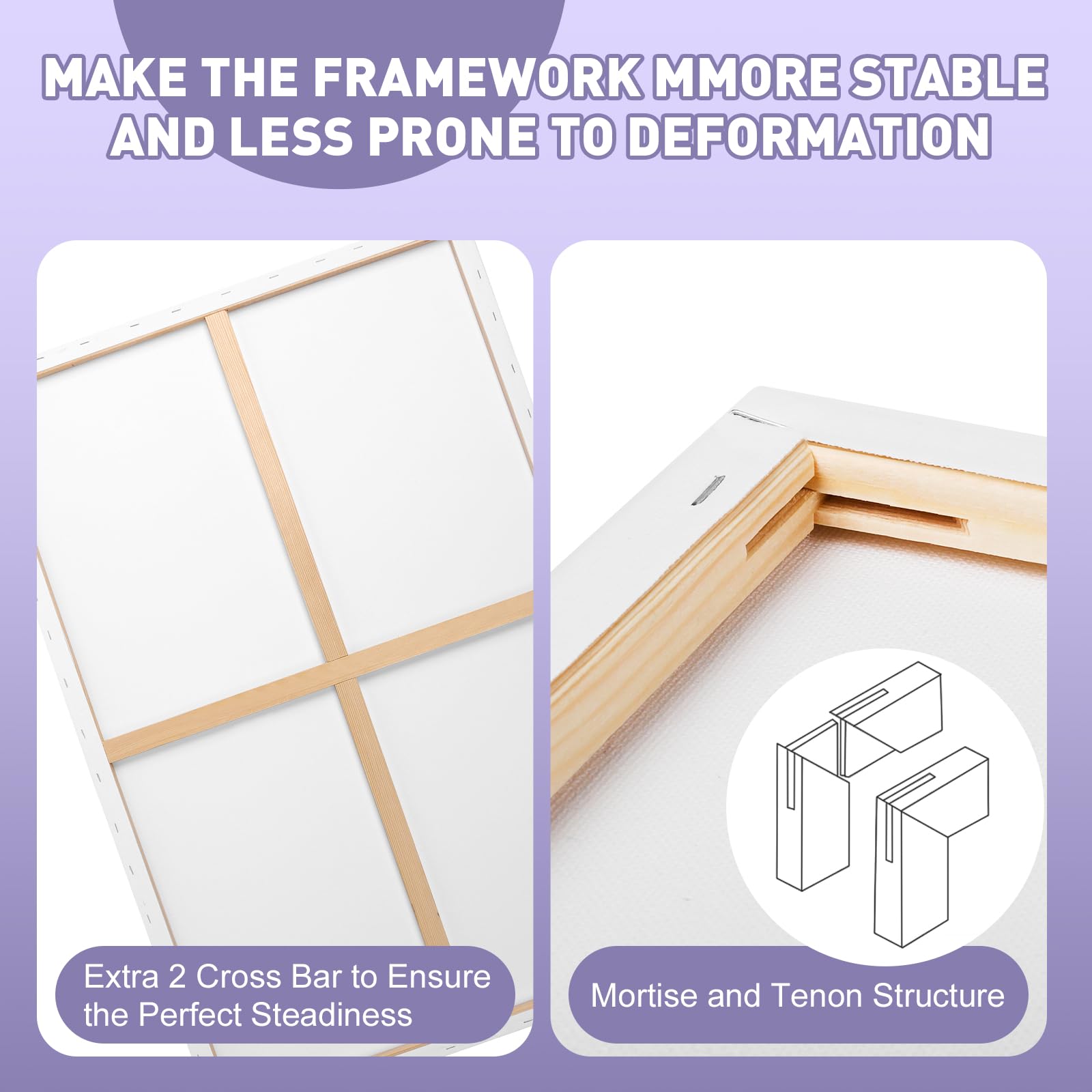 Wood Frame:The 24x36 canvas for painting is nailed firmly to the pinewood frame, extra cross bar to ensure the perfect steadiness, 5/8 inch thick frame structure,It's sturdy and doesn't deform easily. The high quality will enhance your painting experience.