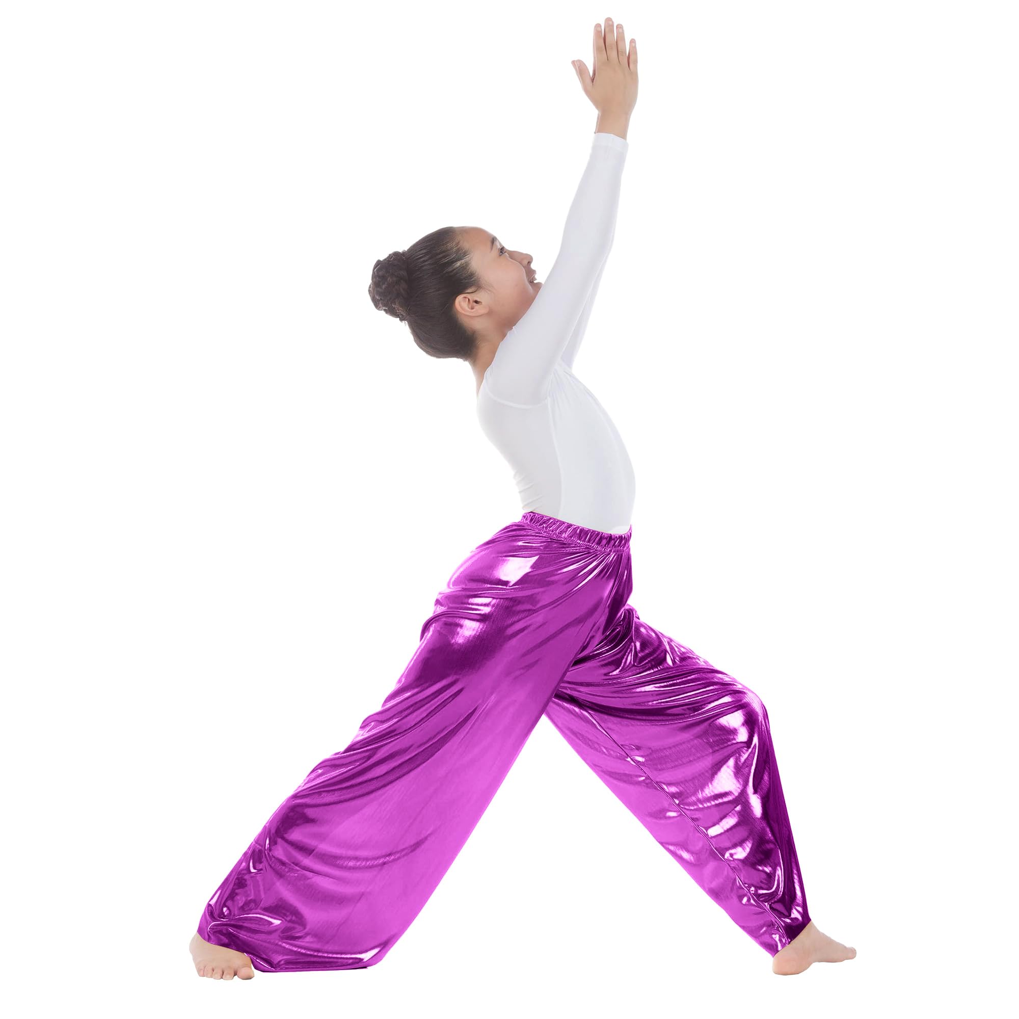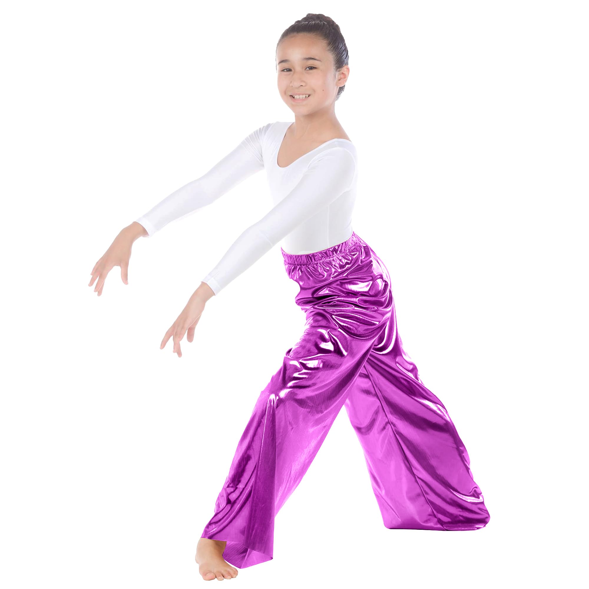 Description Palazzo pant is designed for dancers that perform spiritual or liturgical dancing. This pant features a loose and extra wide leg fit. The polyester/spandex fabric is smooth, soft, and moves easily when dancing. The elastic waistband design provides a comfortable fit and easy changing for performances.