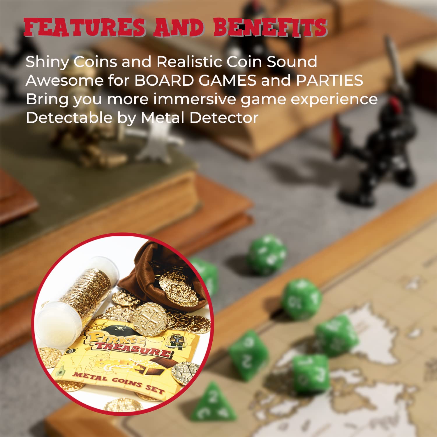 INSTEAD OF CHEAP PLASTIC COINS - Forget about cheap plastic coins, throw away your boring paper and change them into gold coins. Solid gold color and metal feel and “cha-Ching” sound will bring great fun to your games.