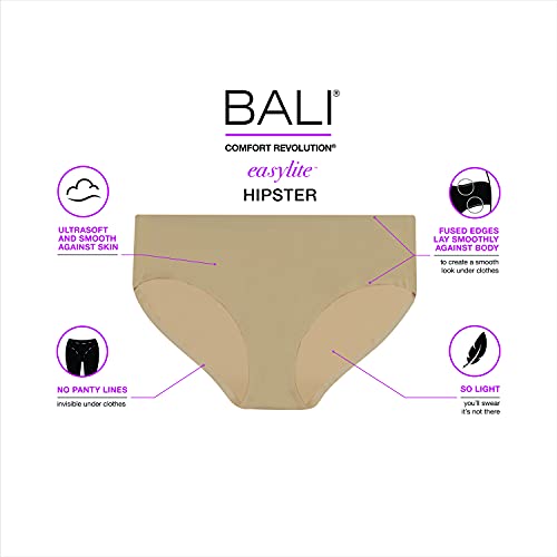 Description Bali® women’s Comfort Revolution® EasyLite® hipster panties offer a silky-smooth design with the perfect amount of stretch. The ultra-lightweight nylon fabric provides all-day comfort, while also eliminating panty lines. Created with a flat seamed SmartComfort™ waistband and non-binding leg bands, these women’s brief panties won’t dig or pinch. Designed with a higher waist, this tag-free panty offers incredible full back coverage so you can move with ease. Bali® women’s hipster underwear is available in an array of colors for more everyday options.