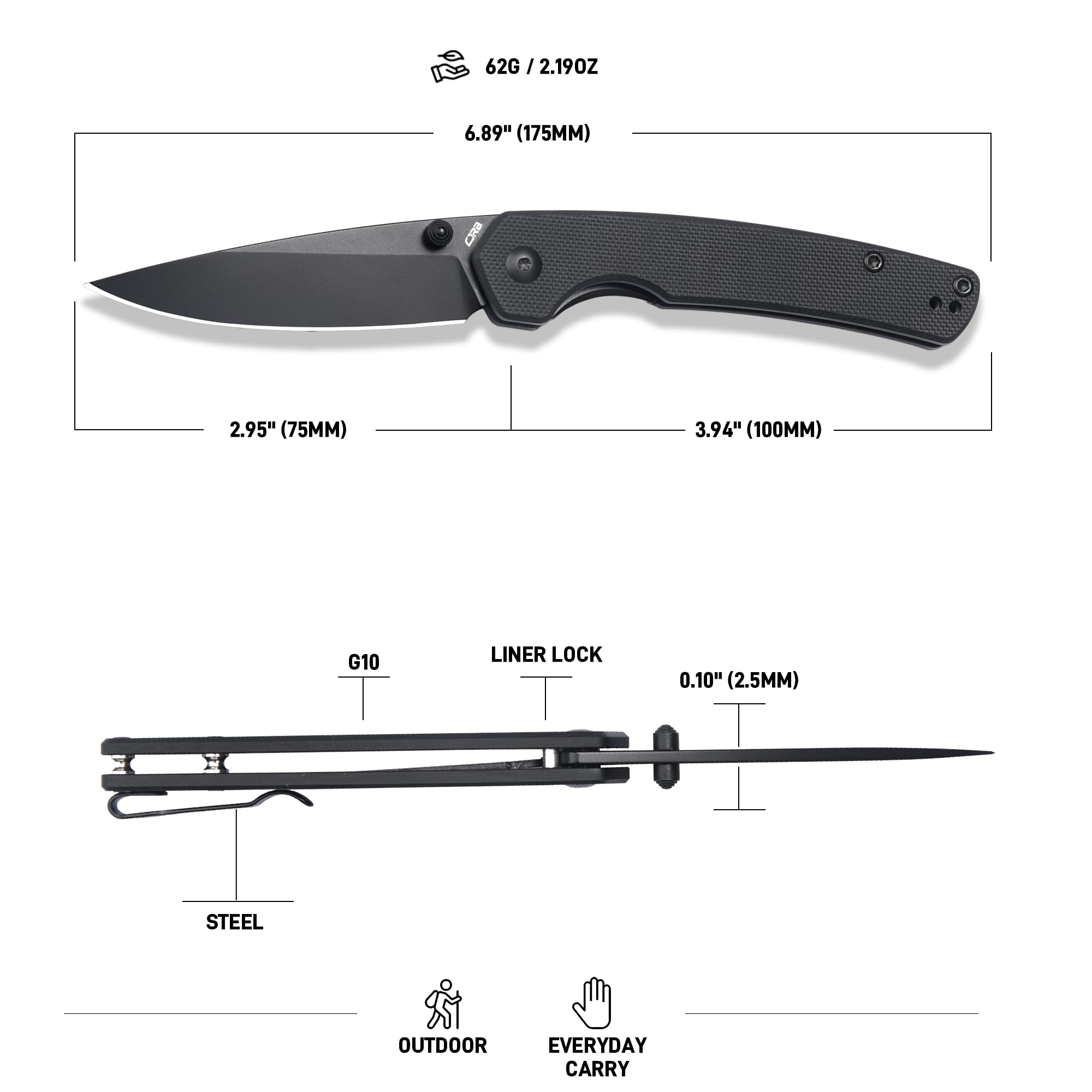 Precision Cutting: The CJRB Kain pocket knife features an 2.95'' AR-RPM9 steel blade and a drop point design, offering unparalleled precision and durability. It's a versatile tool suitable for any task