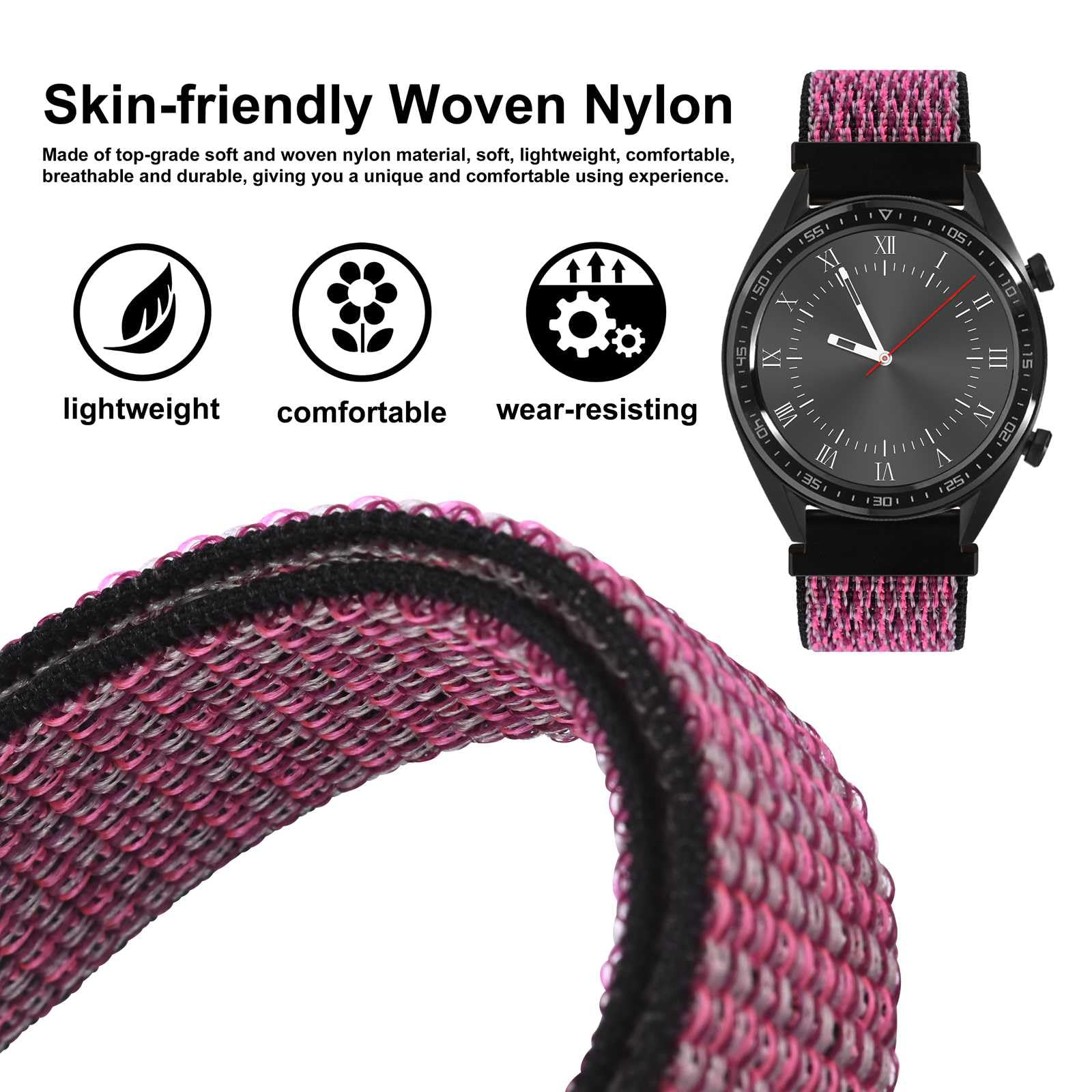 Material: This band is made of durable double-layer nylon weave and the nylon fabric is crafted from cotton woven material which is exceptionally soft and light, making comfortable to wear.