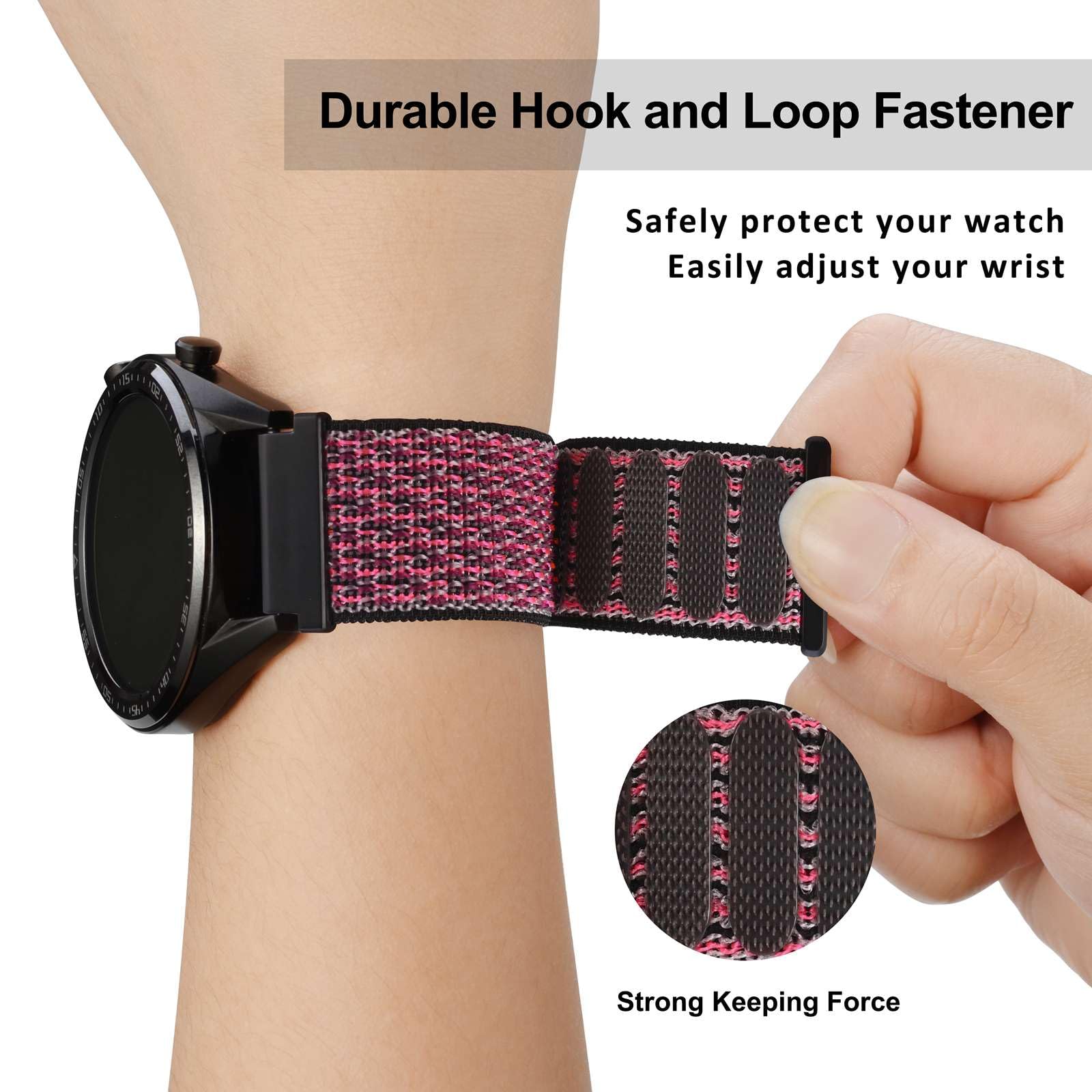 Adjustable: Fit wrist 14.5cm-22cm (5.7-8.6 inches). Adopt an durable Hook and Loop closure which can be cycled (opened and closed) thousands of times, allowing the watch to be fastened or adjusted in seconds.
