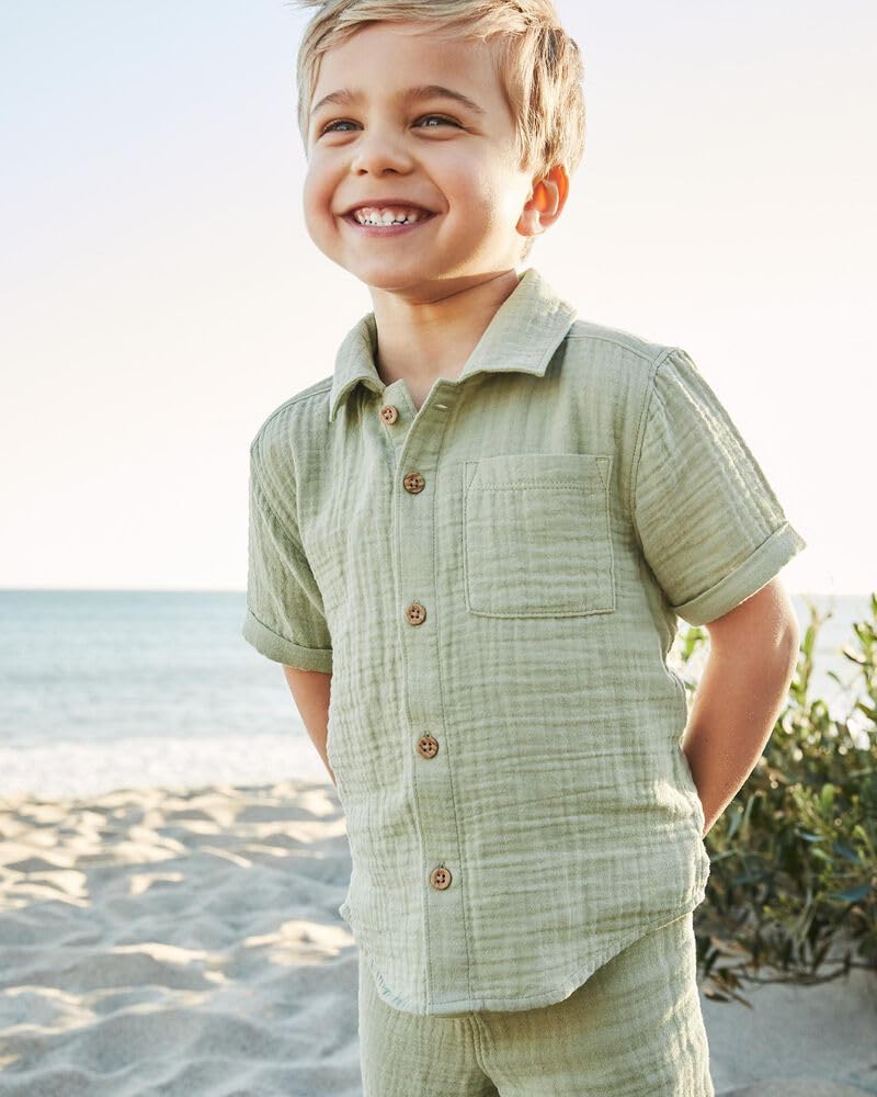 FEATURE - This button down shirts set is short sleeve, lapel neck, buttons, pockets, solid color, elastic waist and 2pcs set.