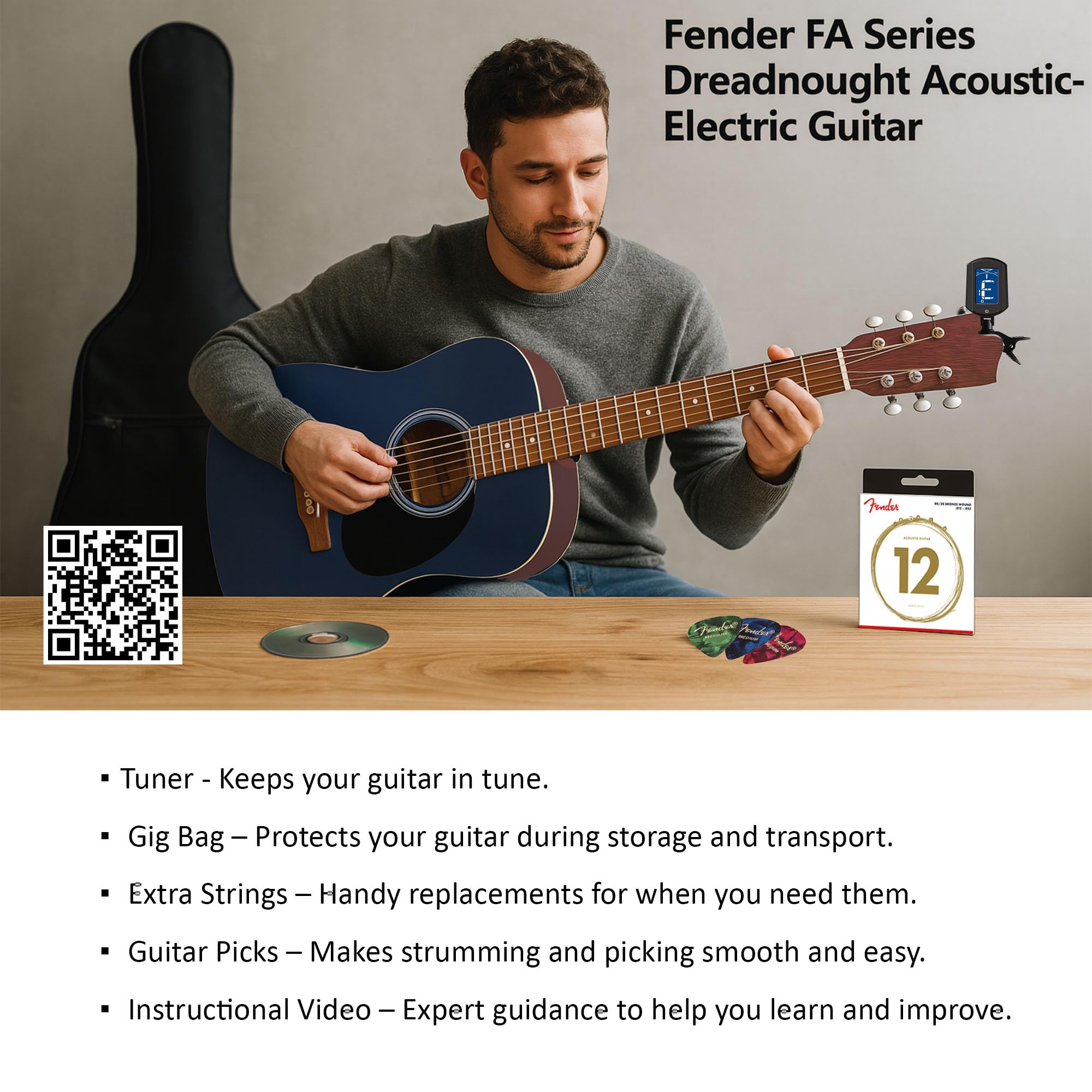 DREADNOUGHT BODY: The Fender FA Series guitar features a classic dreadnought body shape, delivering a bold and full-bodied acoustic tone with excellent projection