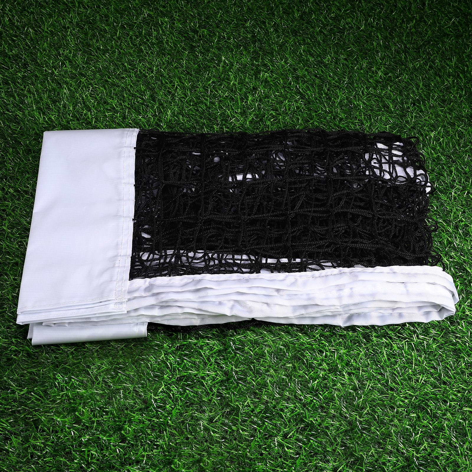 【Durable & Professional Looking】-- It is made of high quality polyester webbing with a white vinyl band running along the top and sides. The net is regulation size at 22' long and 36" tall in the center (Namely 22 x 3 ft / 670 x 91 cm). It also comes with a center-strap design for consistent height and adjustment straps on net edge for excellent net tension.