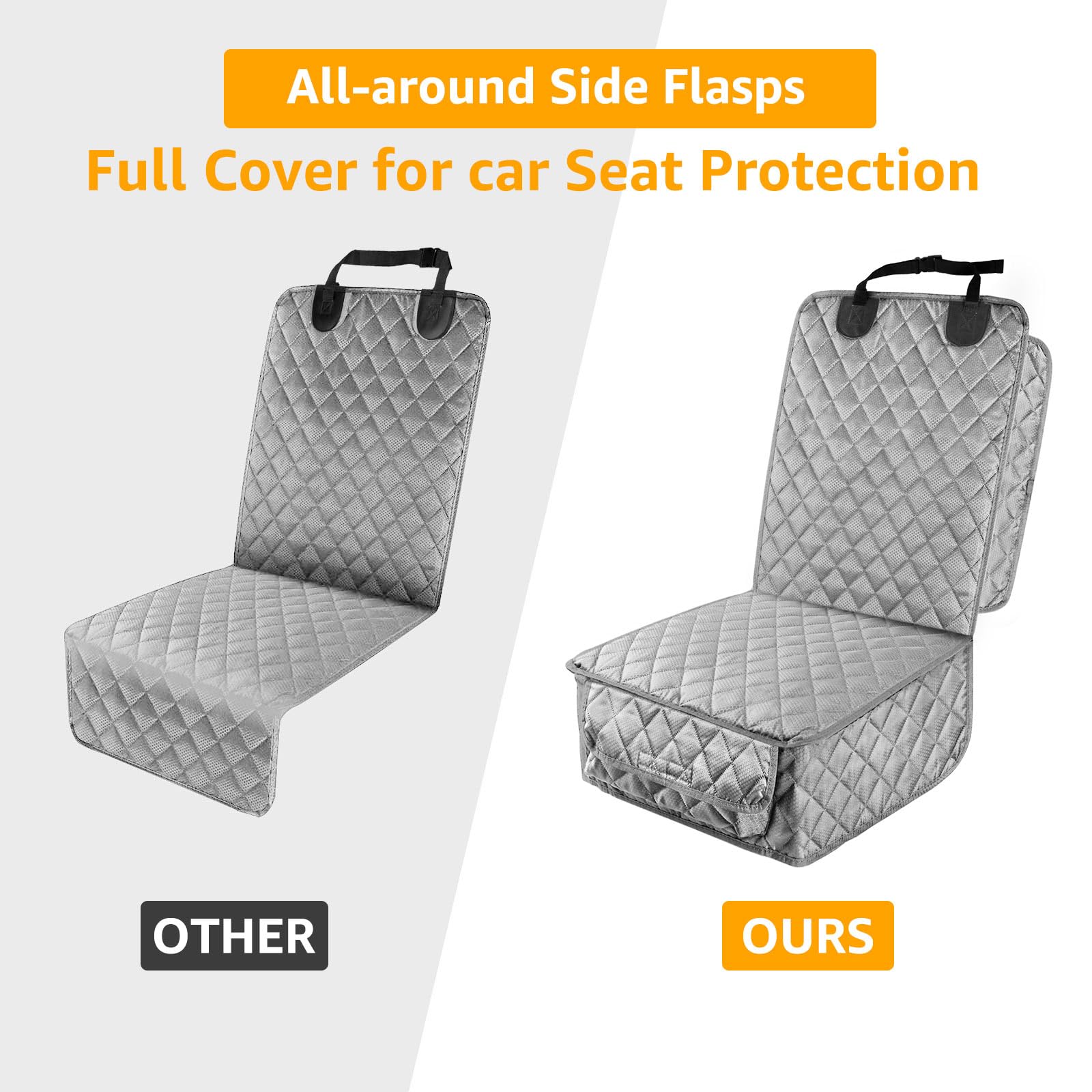 Front Seat Cover with Side Flaps - It can easily fit in the front seat of most standard vehicles. With side flaps, this waterproof front car seat cover for dogs can protect your seat’s ends from scratching.