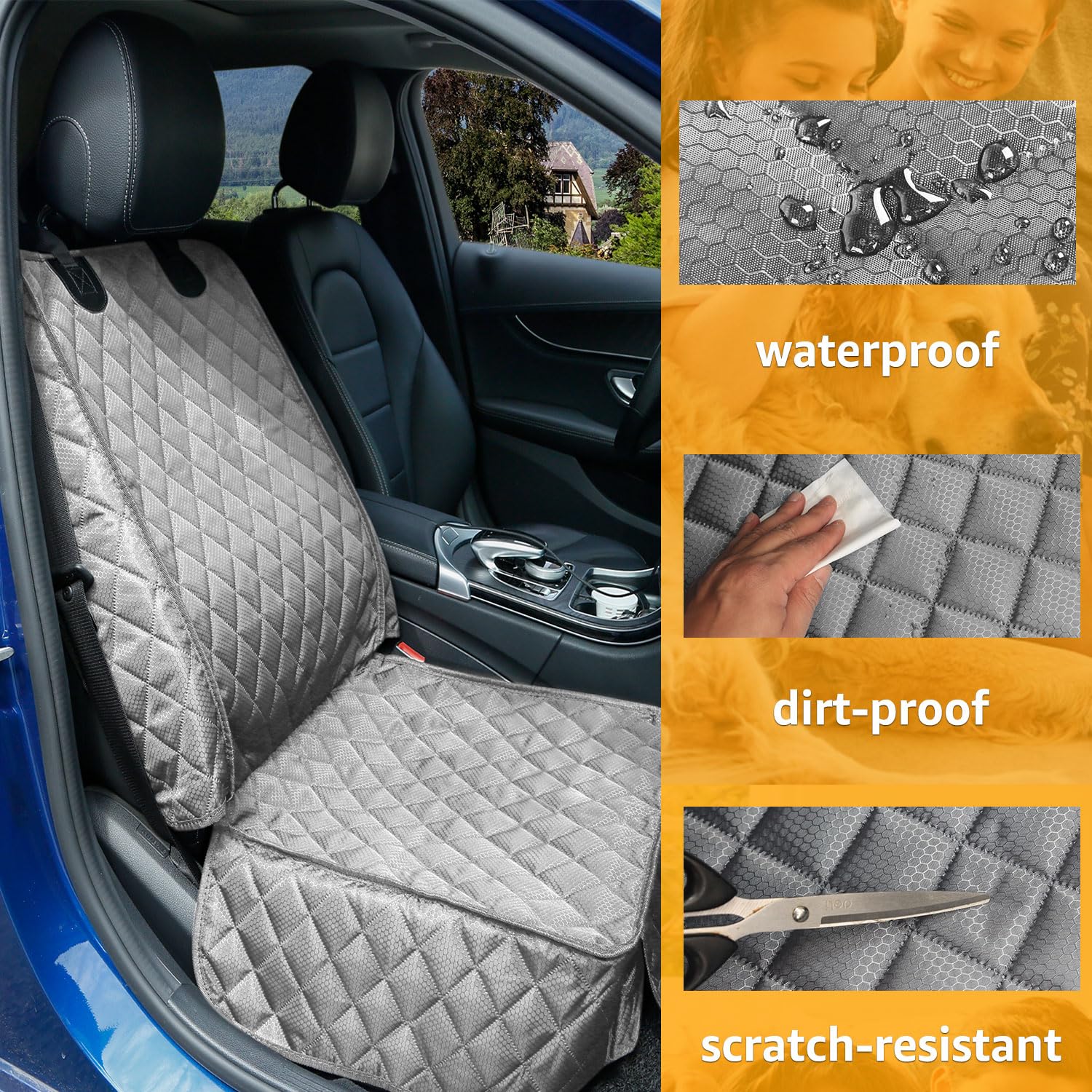 PETICON Waterproof Front Seat Car Cover 2 Pack, Full Protection Dog Car Seat Cover with Side Flaps, Nonslip Scratchproof Captain Chair Seat Cover Fits for Cars, Trucks, SUVs, Jeep, Gray (Gray)