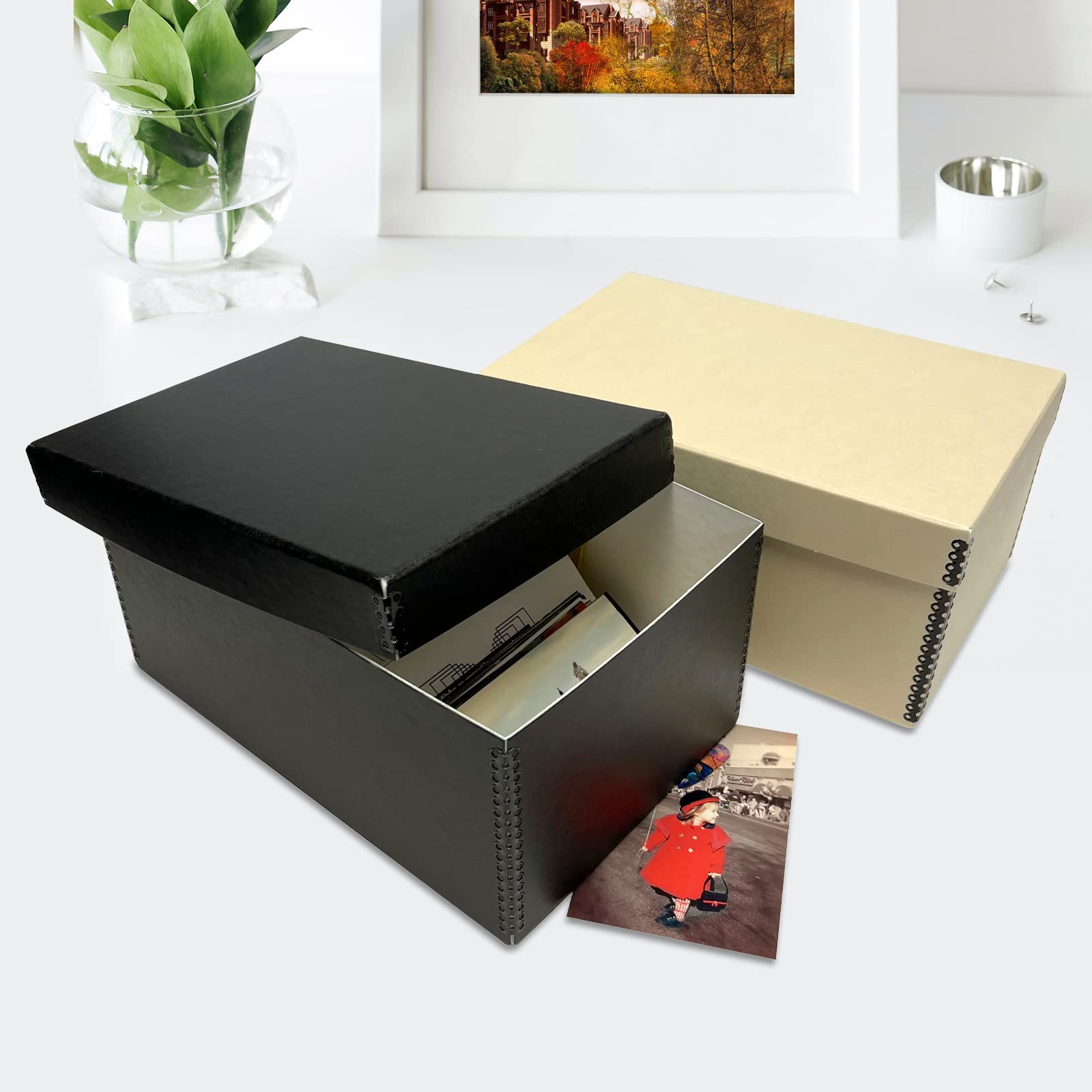 Size:12" x 6.75" x 4.75" for 3.5x5 or 4x6 Photos, Cards, Documents, Pictures, Important Delicate Prints, and Small DIY Items. Color: Tan, 40 pt. board