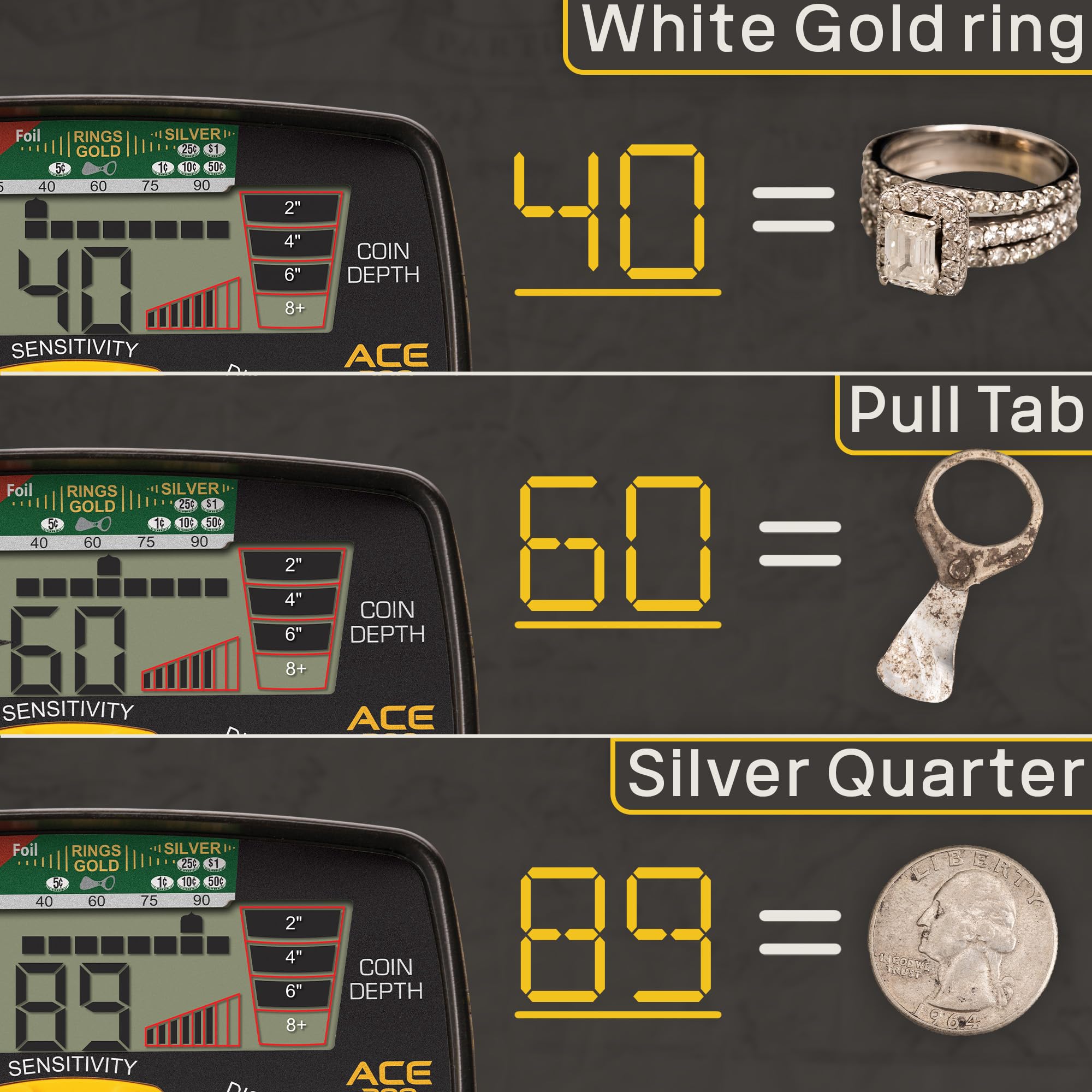 DIGITAL TARGET ID: 0-99 numeric scale helps identify metal conductivity for precise target detection.