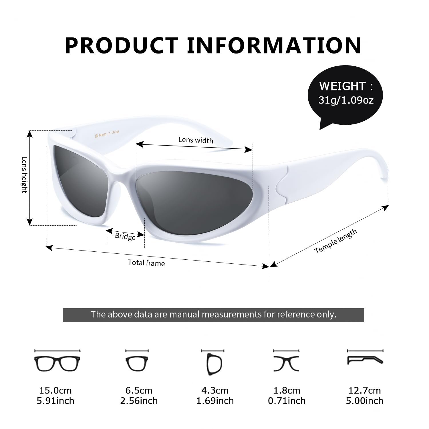 PRODUCT DIMENSION&PACKAGE – Lens Width: 65mm(2.56 inches) | Lens Height: 35mm(1.38inches) | Temple Length: 135mm(5.31 inches) | Nose Bridge: 20mm(0.79inches).PACKAGE –Sunglasses, microfiber pouch, glasses box.