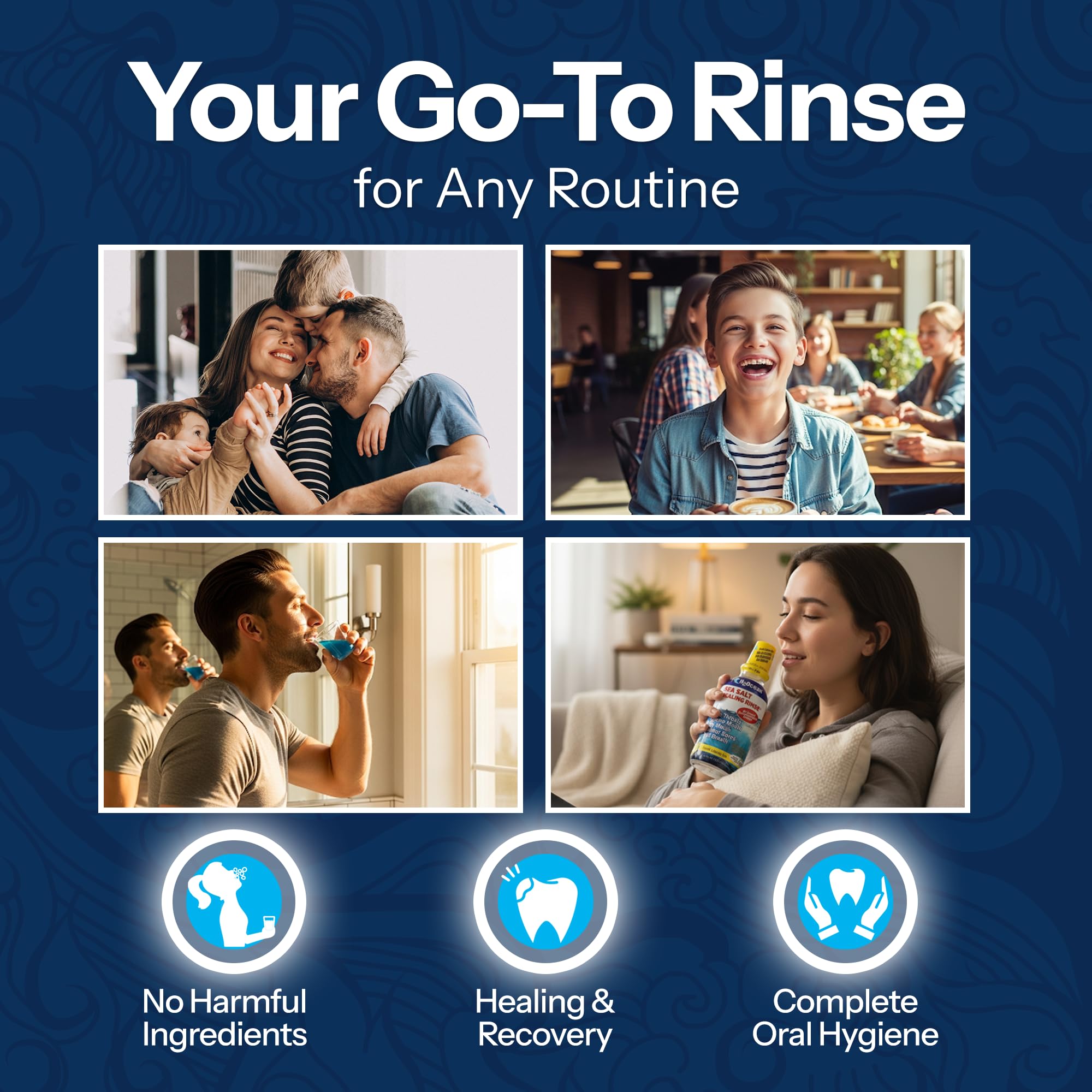 FLUORIDE AND ALCOHOL FREE - H2Ocean’s oral rinse formulas are enriched with sea salt and natural enzymes without any harmful chemicals so it is safe for all ages!