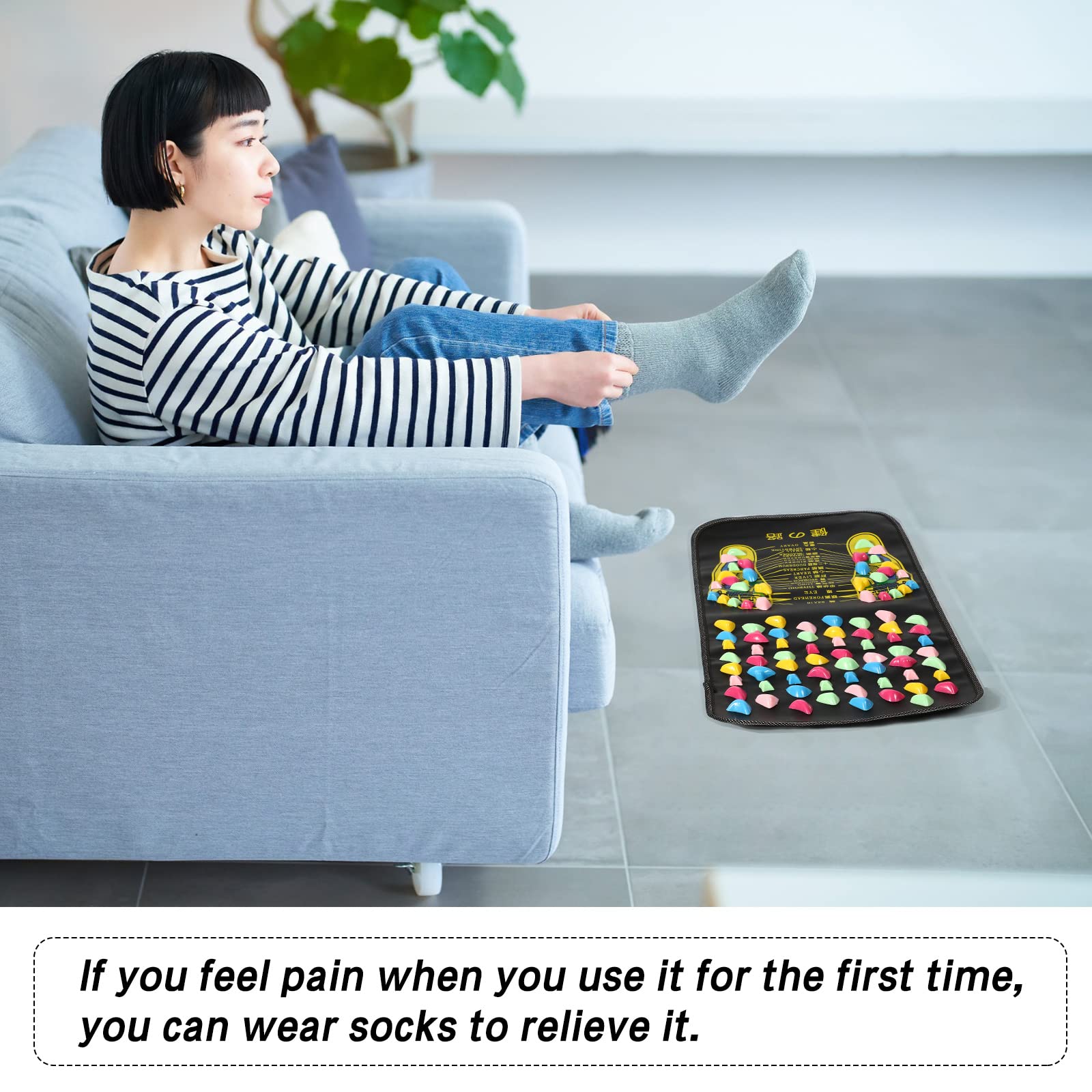 Build Tolerance: when using the foot massager mat for the first time, you may feel excruciating pain on the soles of your feet, so please wear socks to build tolerance before using it, and then slowly change to barefoot massage; There may be a smell when the product arrives, you can place the mat in a ventilated place to disperse the smell before using it