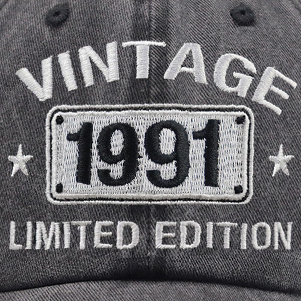 Vintage 1991 Hat Premium Material: Embroidery " Vintage 1991 Limited Edition ", Logo on Front. Funny 1991 Birthday Caps 100 Percent Cotton Denim Fabric, Excellent Quanlity Soft Tactility. Vintage 1991 Baseball Cap The Inner Side Is Equipped with A Sweat Absorbing Belt to Absorb Moisture and Wick Away Moisture, Breathable Comfort, Lightweight and Dry.
