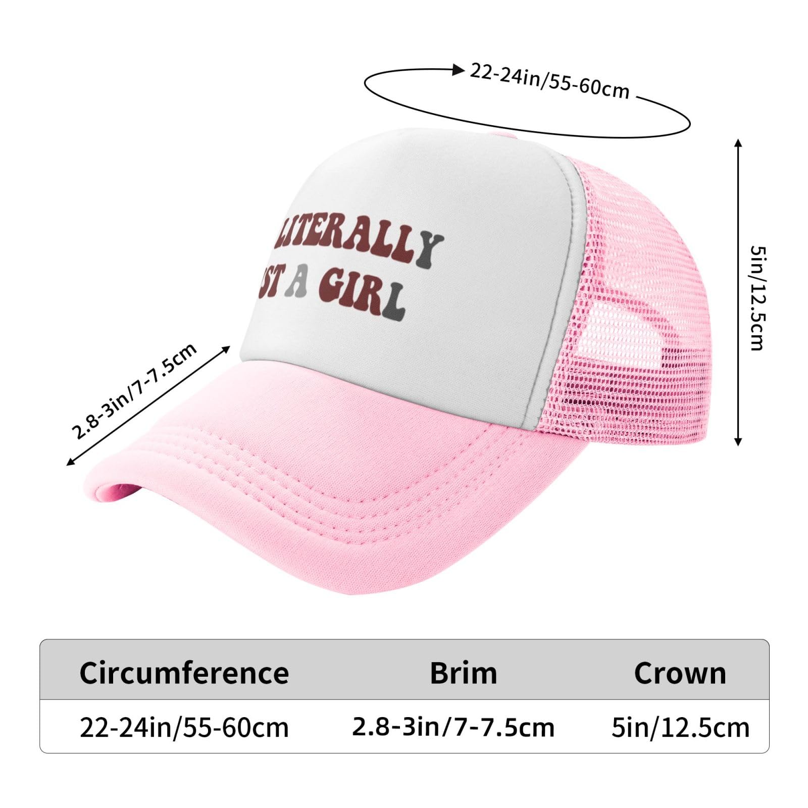 I'M Literally Just A Girl Size:Adjustable trucker hat. Making It Can Fit Most People'S Heads Comfortably; You Can Conveniently Lengthened Or Shorten The Belt To Adjust The Size As You Need. Which Can Fit Different Head Sizes Of Men Or Women