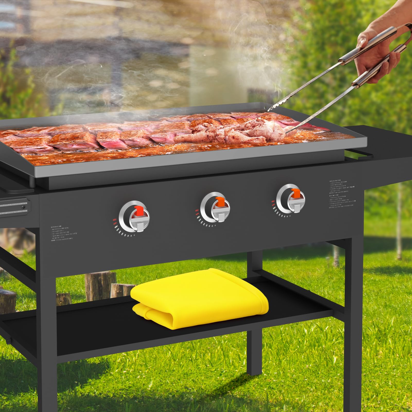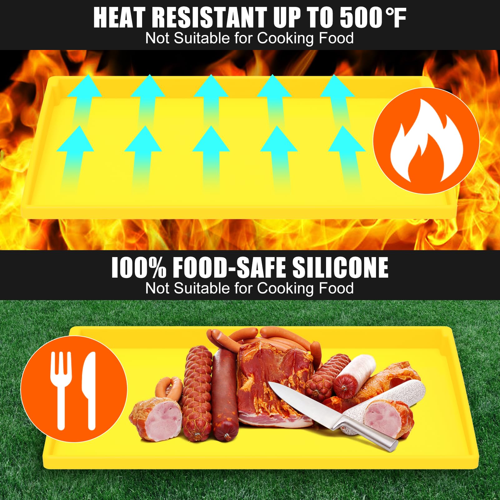 【FOOD GRADE SILICONE】: The griddle mat for blackstone grill is made of 100% high-quality food-grade silicone, thick, durable, soft, safe and reliable, you can use it with confidence, it will not heat or transfer heat, and can withstand up to 500℉.