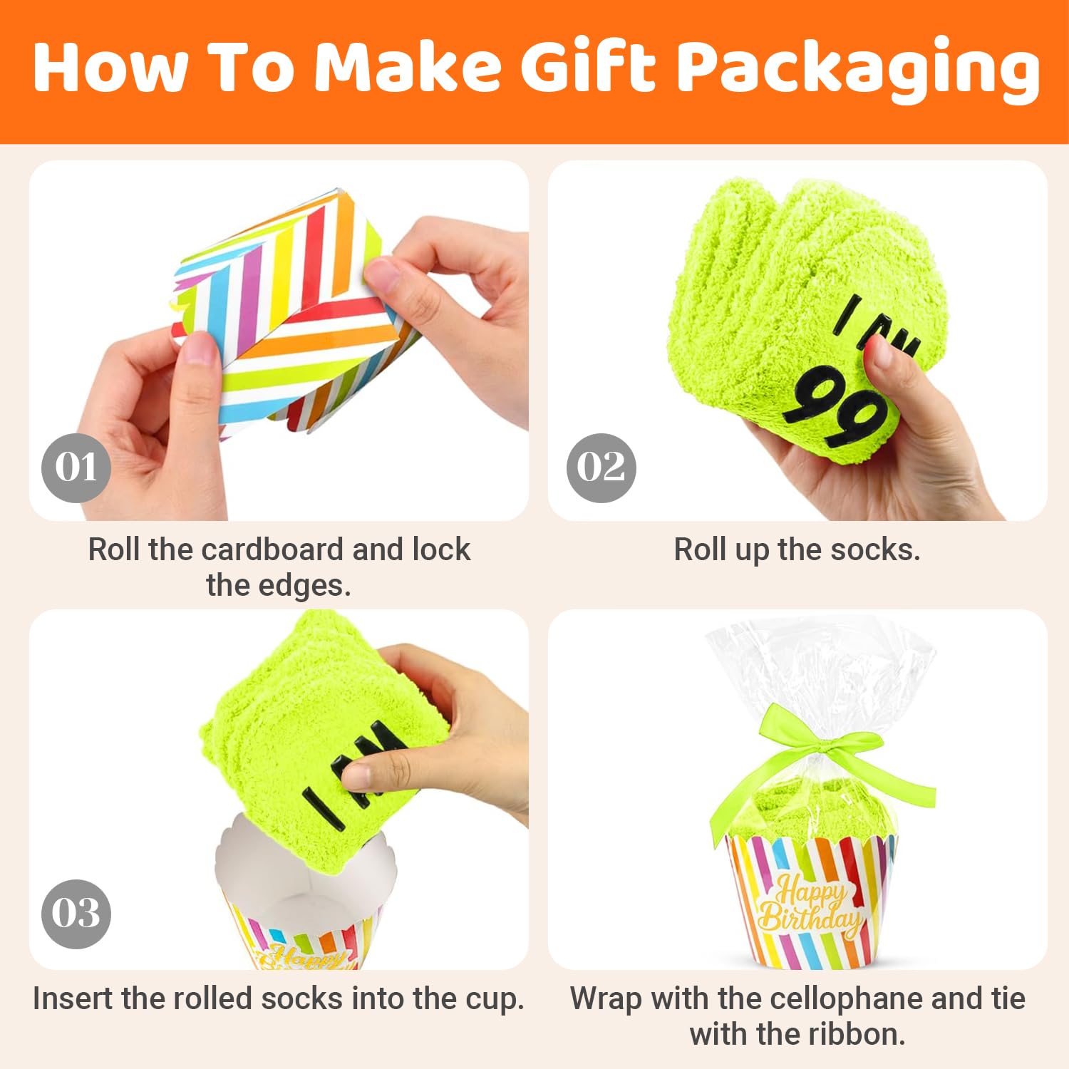 CUPCAKE PACKAGING: Our DIY kit provides all you need to package your socks in an adorable, cupcake-themed gift box.