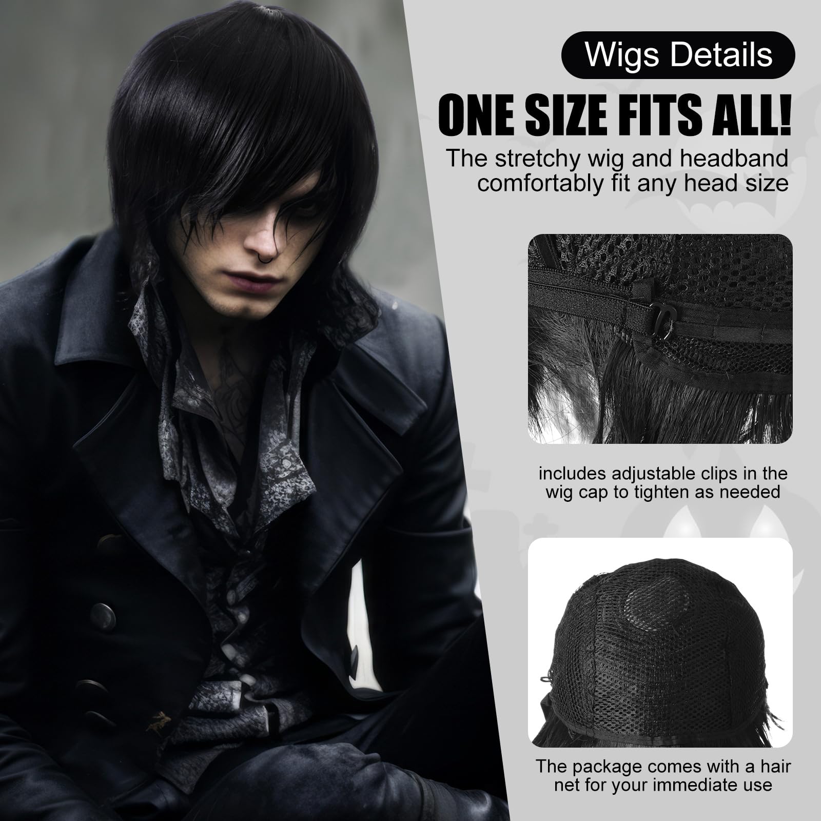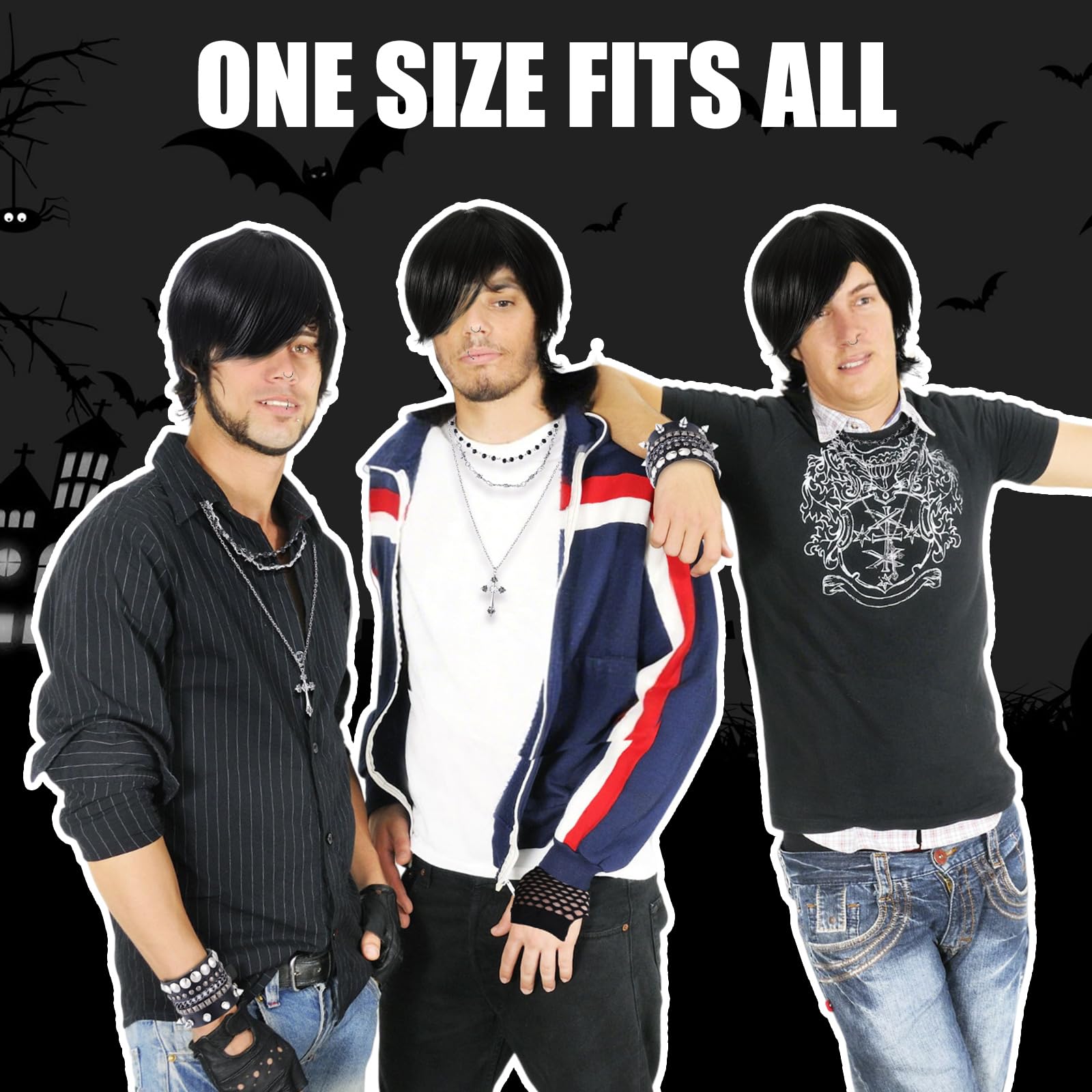 Instant Character Transformation: suitable for Halloween or cosplay, this emo clothes men set creates immediate visual impact; The wig's jagged bangs and black color pair perfectly with the included dark accessories for full scene atmosphere