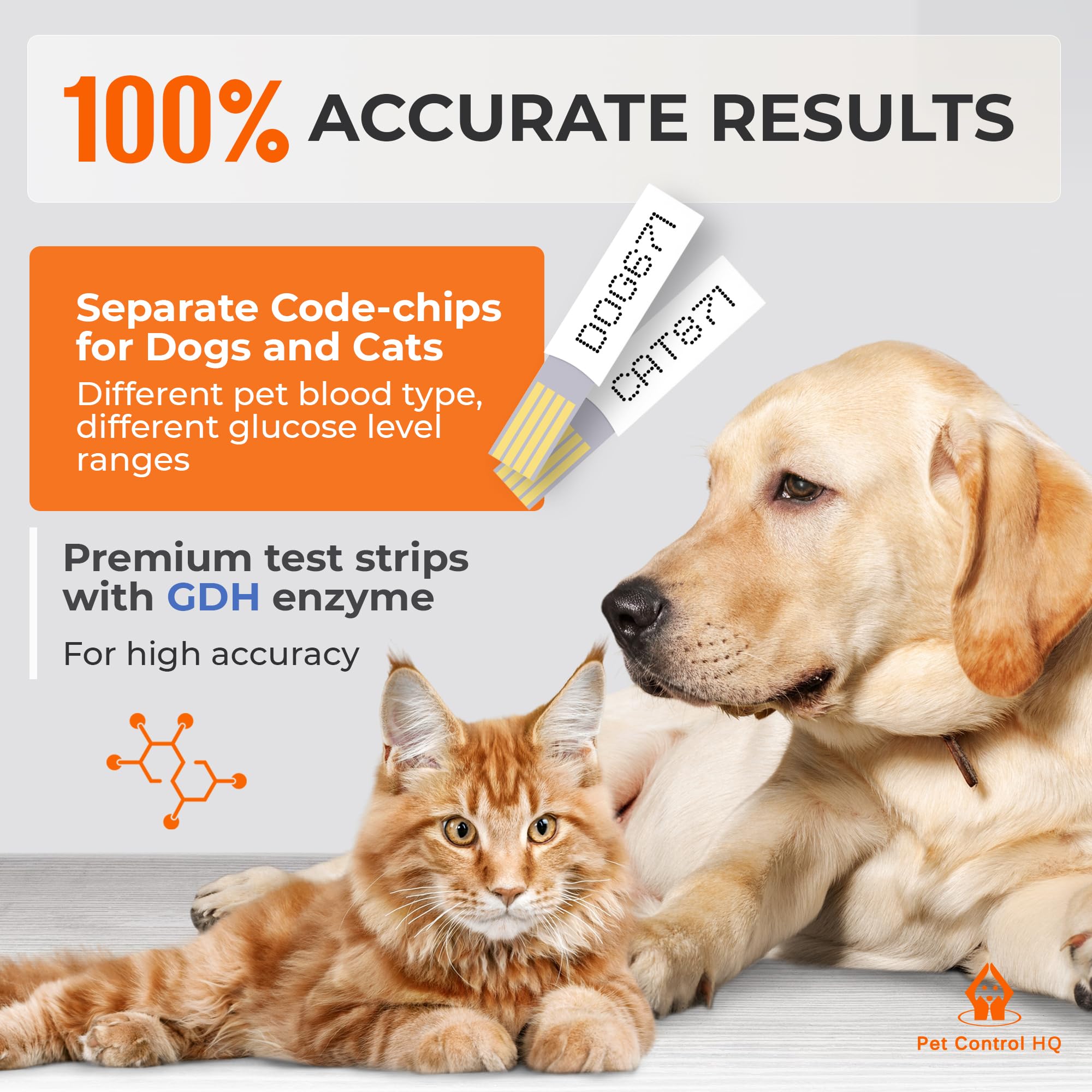 Vet-approved for fast reliable results: The Pet Control HQ glucose monitoring kit with strips is trusted by veterinarians to get fast and accurate glucose readings for diabetic pets. Our pet glucometer kit uses premium GDH enzyme collaborating test strips (stored in a temperature-controlled vial) and has 2 Code-Chips (one for dogs, one for cats) for more consistent and accurate test results that will help your furry friends stay safe