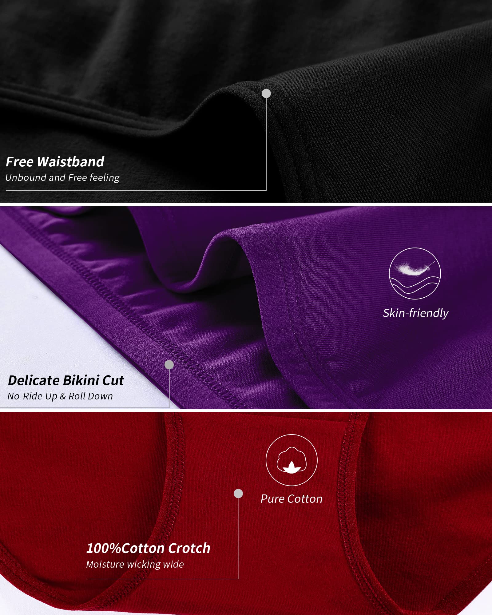 NO SHOW UNDERWEAR:The thin flat and stretchy elastic waistband offer a smooth appearance for seamless underwear. No sagging, no binding or pilling. Cotton bikini underwear women are a fantastic mother, girlfriend, and wife