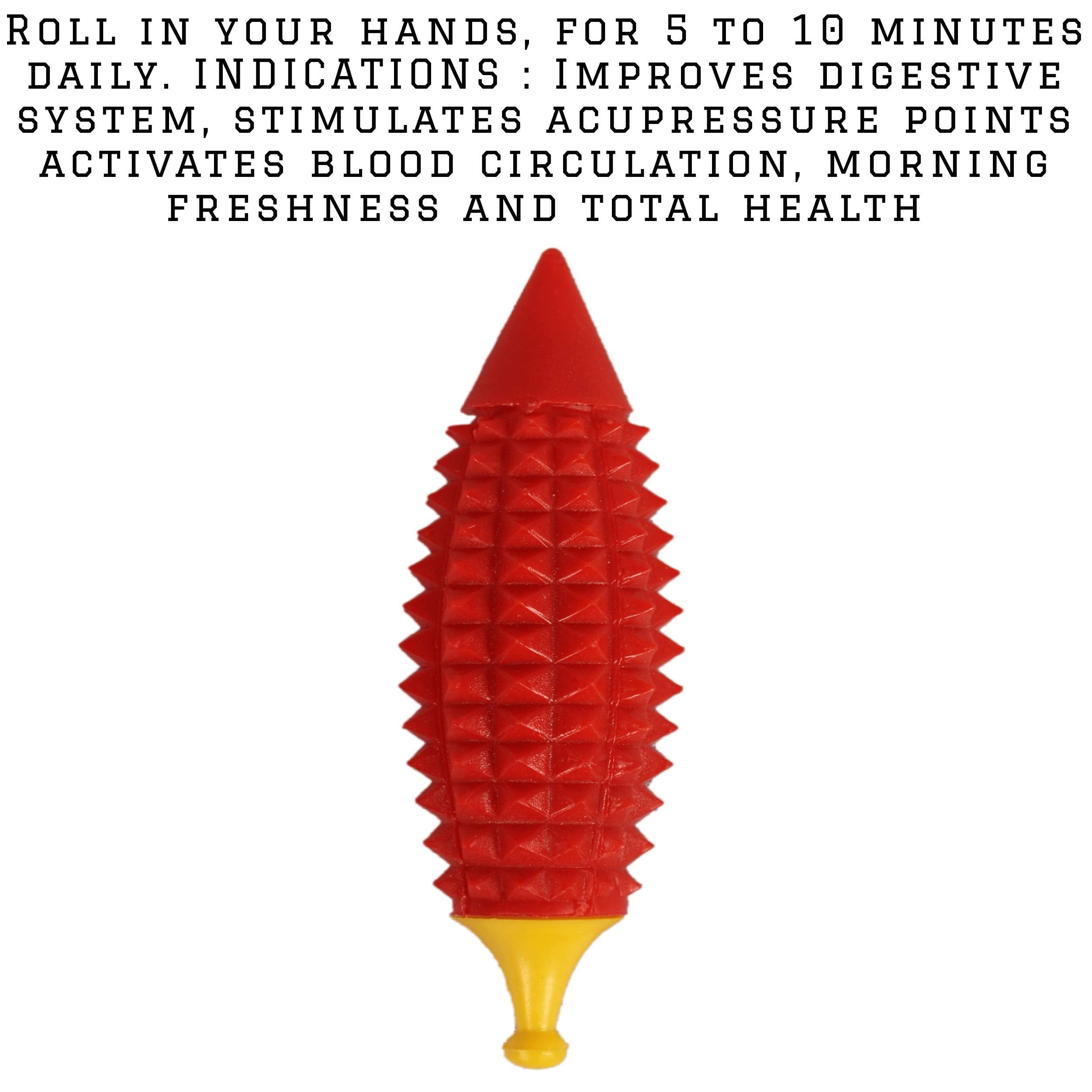 Bosky red karela roll in between you two palms, by putting appropriate pressure. If you feel pricks (not so light and not so tight) comfortably then you are putting right pressure. More benefits while you roll with slow motion and comfortable pressure . It helps regulating blood pressure. alleviating headaches. relieving pain in the arm and wrist